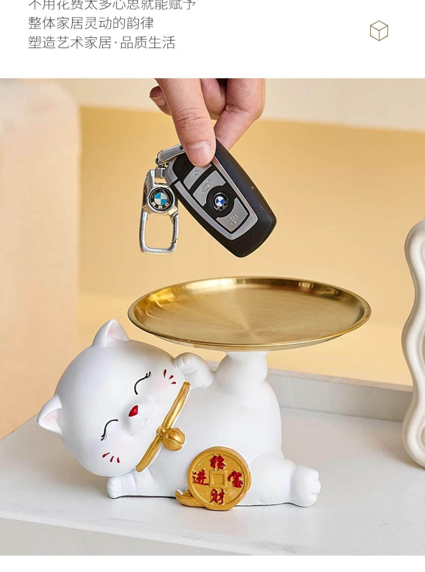 Estante de almacenamiento para llaves de entrada de casa con diseño de gato de la suerte de dibujos animados, decoración para la entrada de la sala de estar, regalo de inauguración de la casa, envío gratis