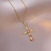 Collar de acero de titanio con colgante de piedra preciosa roja estilo coreano pequeño y fragante para mujer, versátil, con zorro que no se decolora, joyería, cadena de clavícula al por mayor