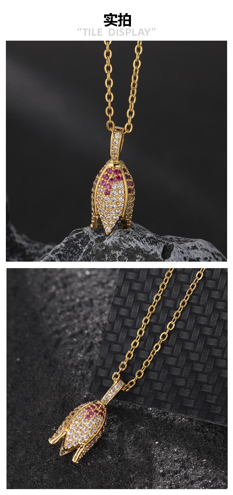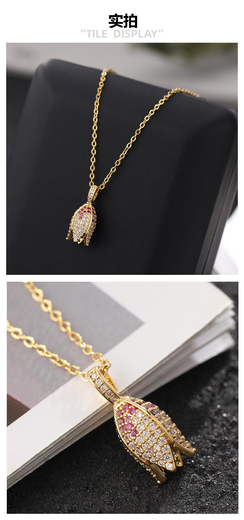 Collar con colgante de flor de tulipán de moda transfronteriza europea y americana para mujer, con microincrustaciones de circonita, color oro auténtico, cadena de clavícula, joyería