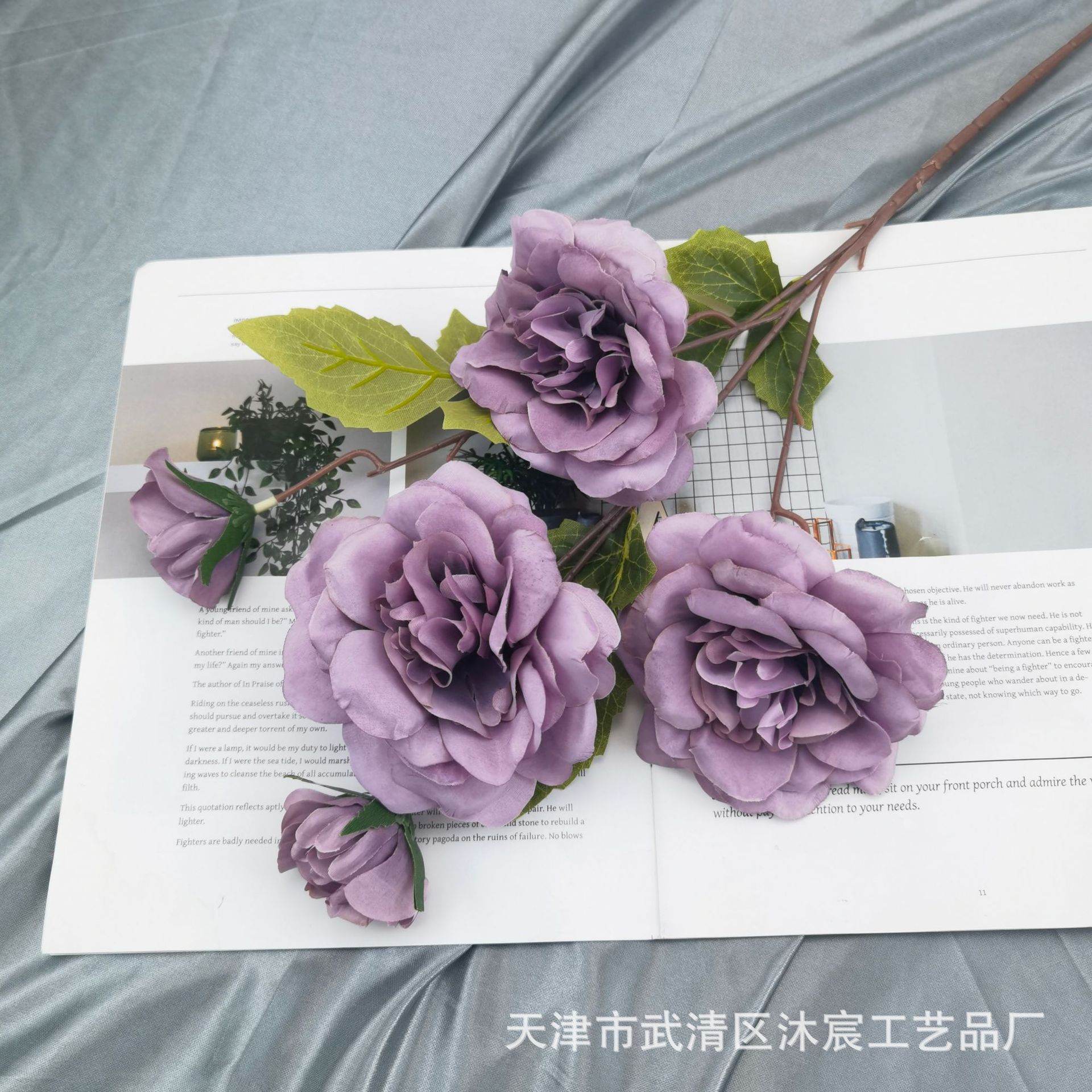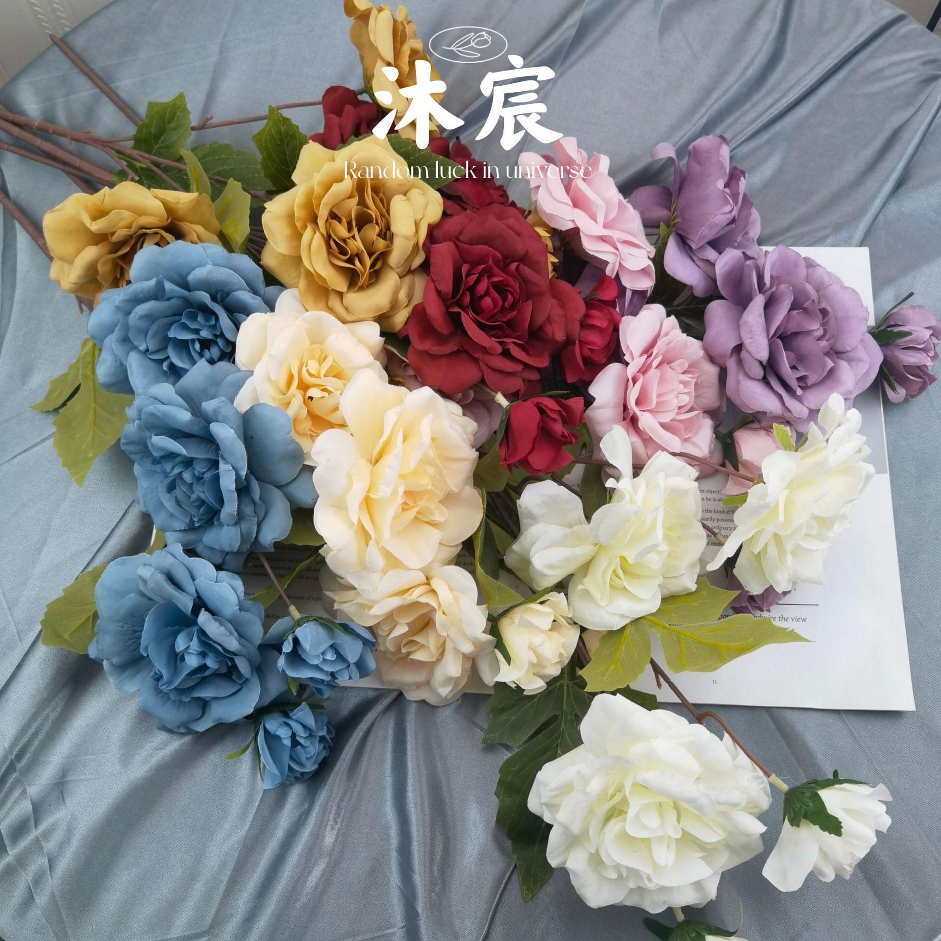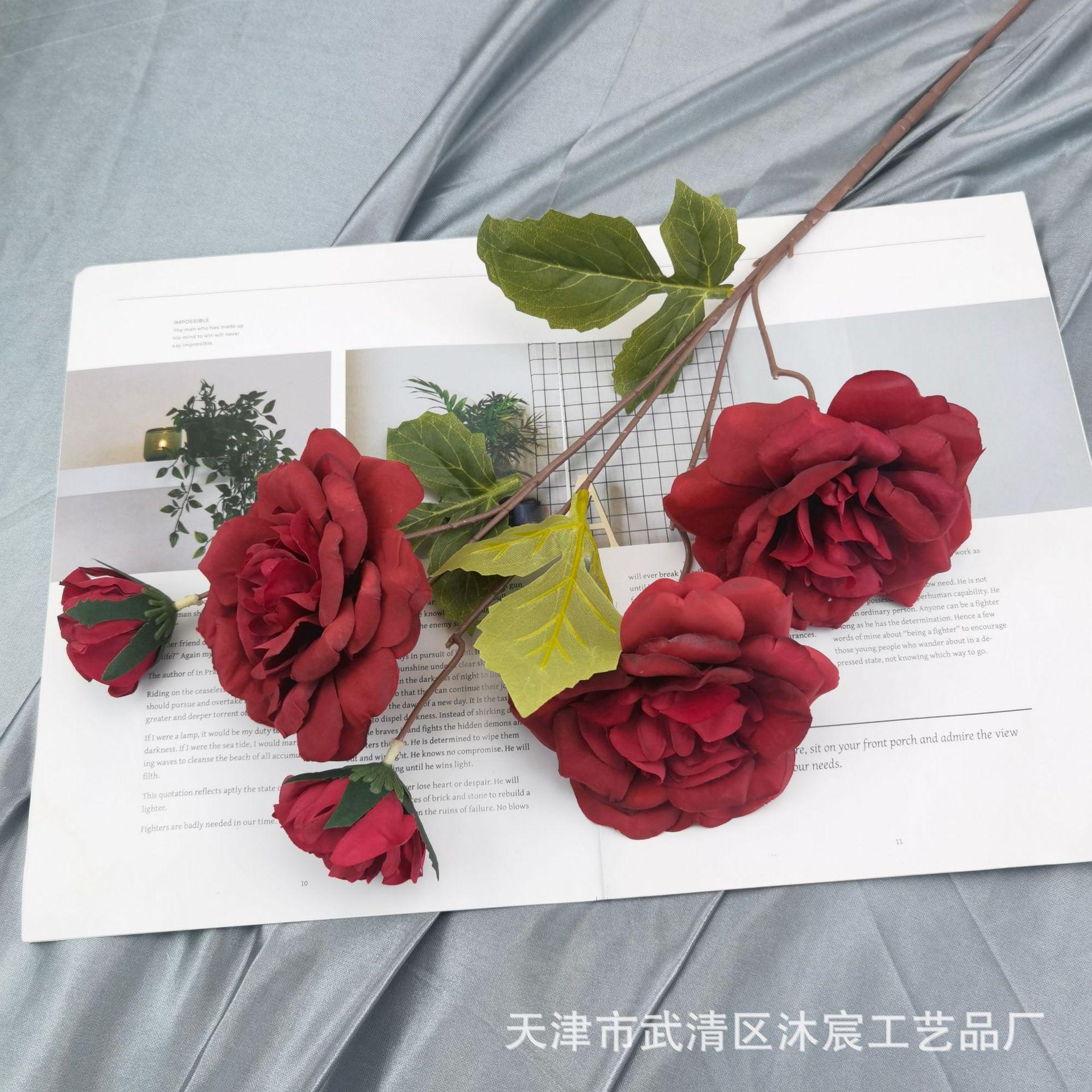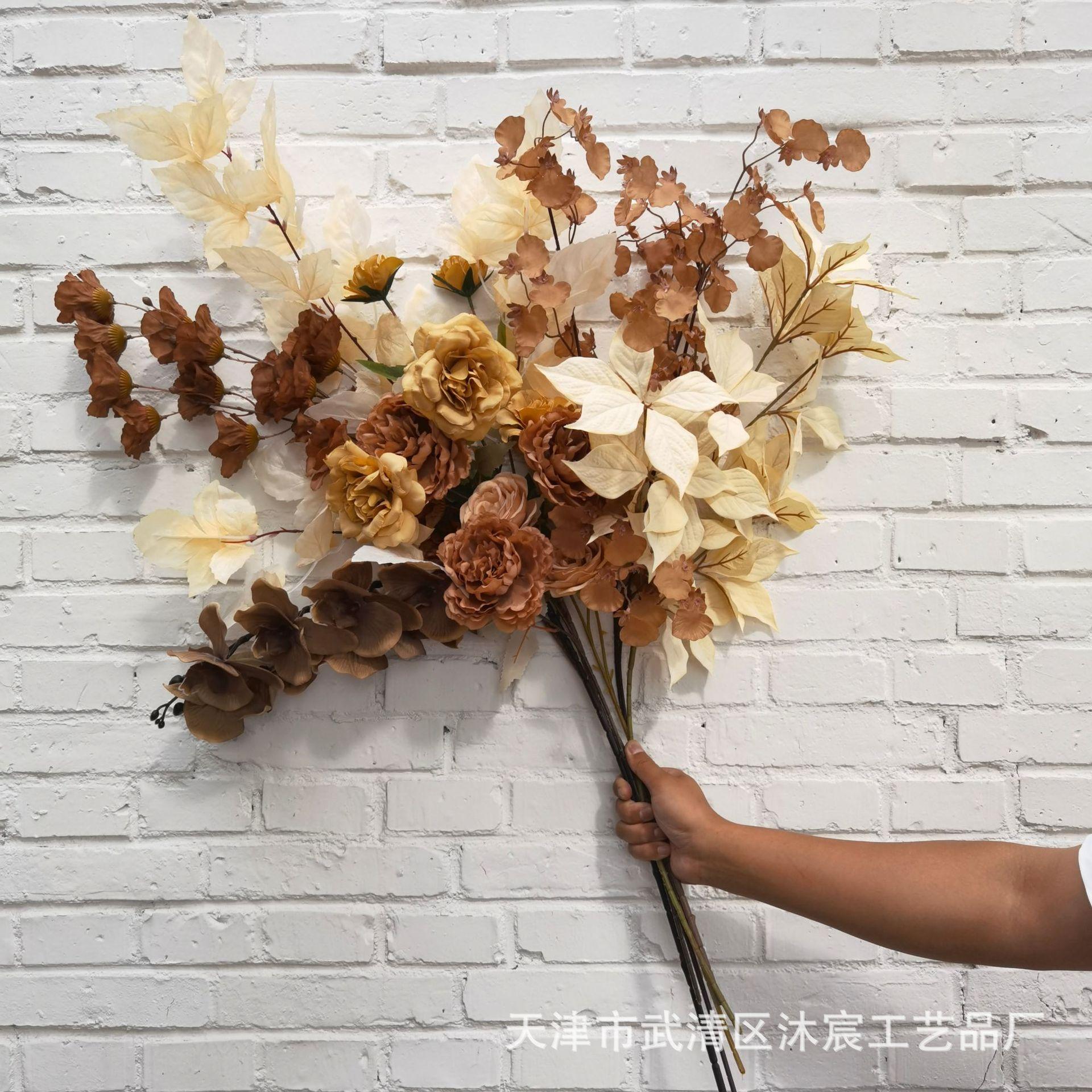 Flores de simulación 5 cabezas Rosa de té Laifi Flor para decoración de salón de bodas Arreglo floral para guía de camino