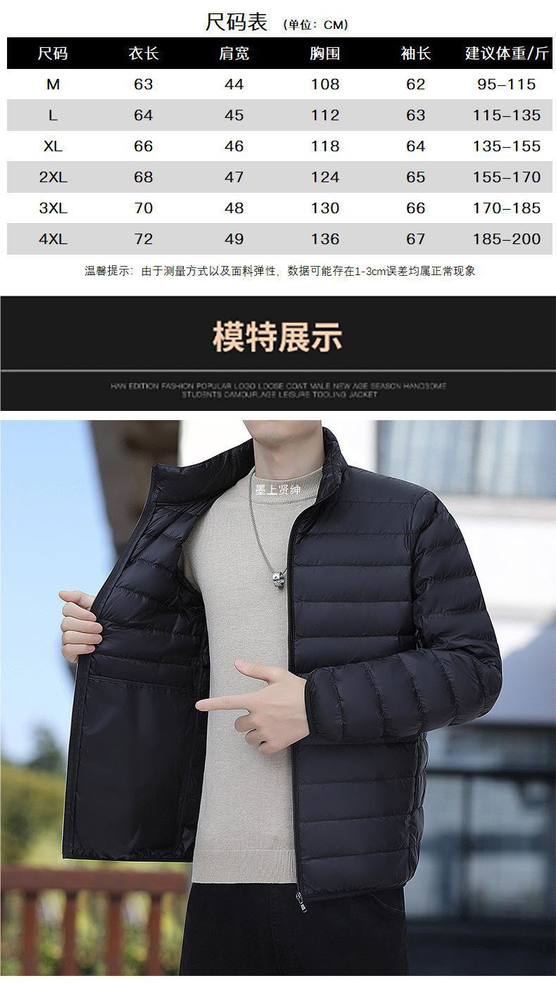 Abrigo cálido de moda de talla grande con plumón de pato blanco corto 50 para hombre, ligero y aterciopelado, para otoño e invierno, 2023
