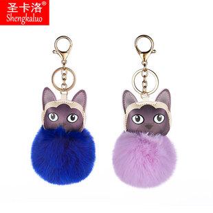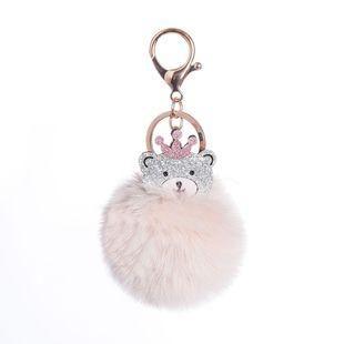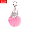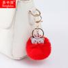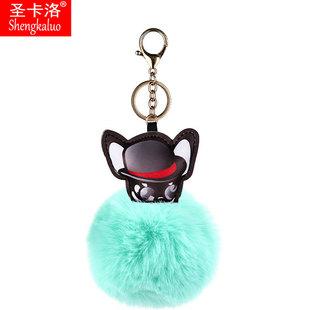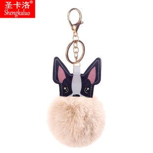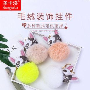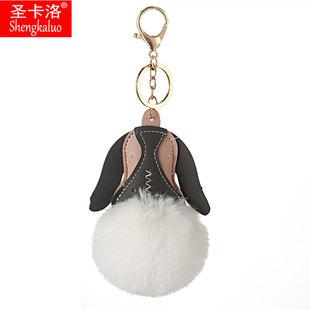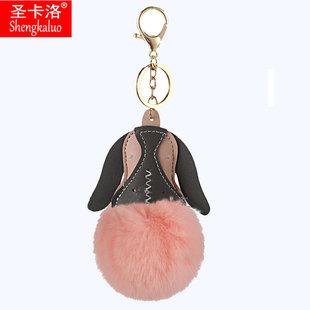 Llavero colgante de bola de pelo de cachorro de PU de dibujos animados transfronterizo, colgante de piel de conejo anti-rex, llavero de bola de pelo estampado para mujer