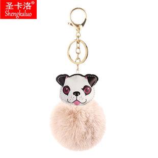 llavero colgante de bola de pelo de perro con cara de PU, colgante de bola de pelo de conejo rex de imitación, colgante creativo de pug, bolsa al por mayor