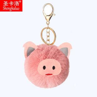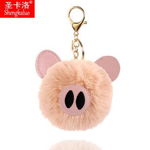Llavero colgante de bola de piel de conejo Rex de imitación de cerdo lindo DIY creativo, accesorios de cerdo de dibujos animados de cuero PU, fabricantes mayoristas