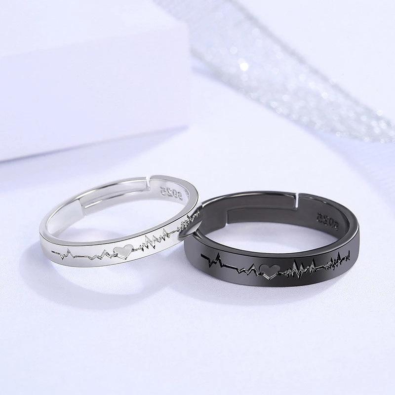 Anillo de Pareja Electrocardiograma Blanco y Negro Uno para Hombre y Mujer Regalo de San Valentín Anillo de Apertura de Moda Latido del Corazón Anillo de Amor