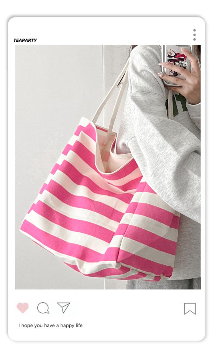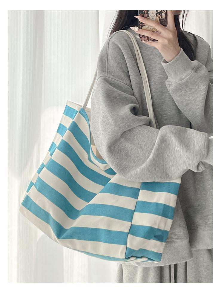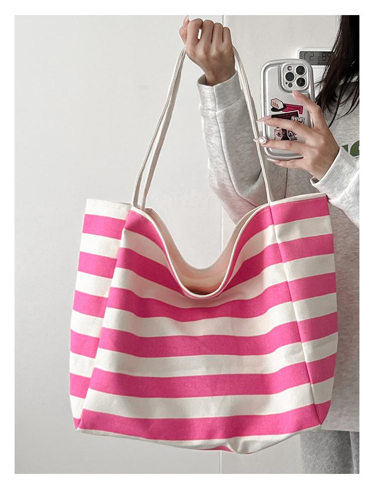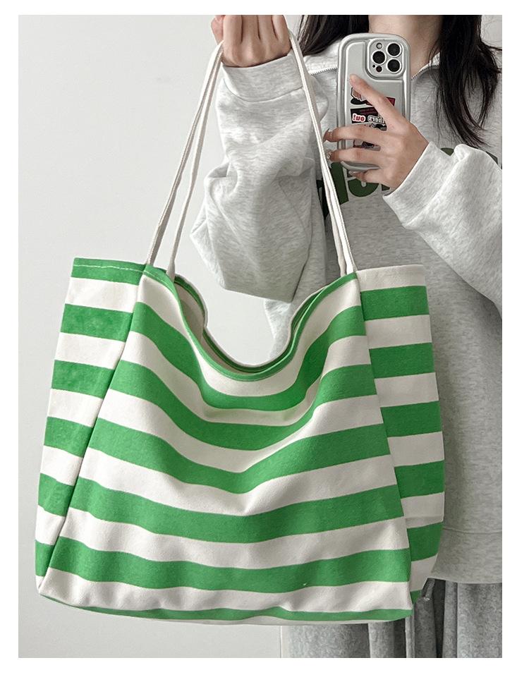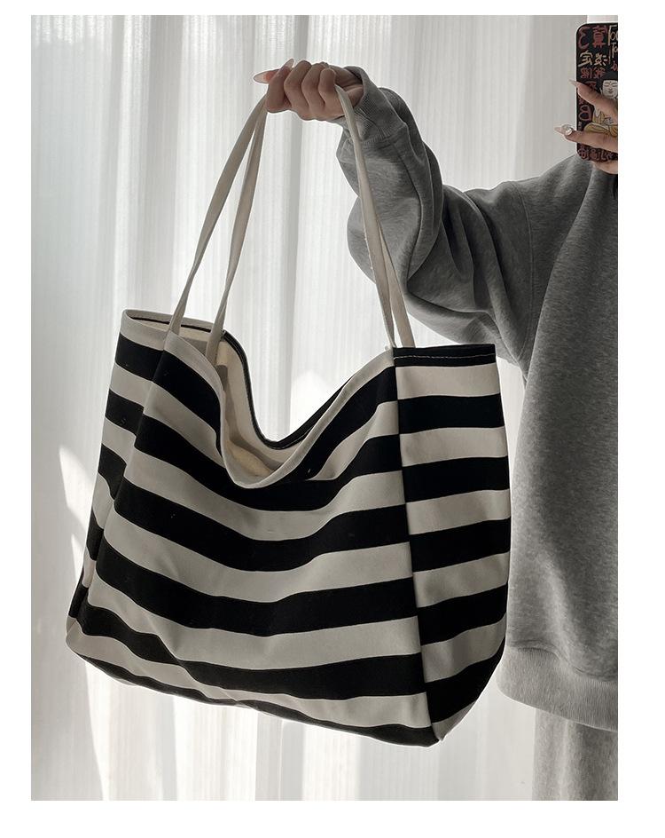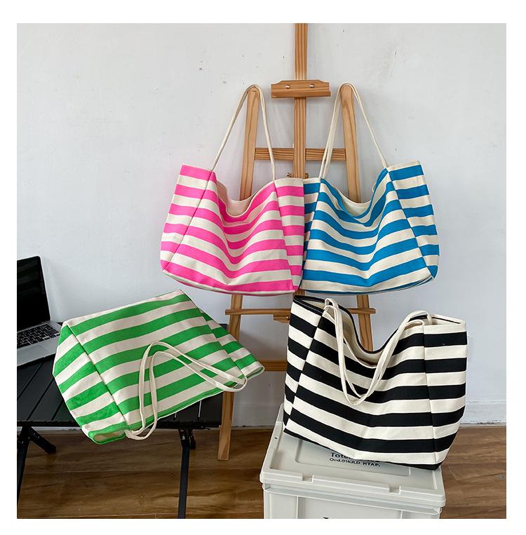 Bolso de lona de gran capacidad para mujer, venta al por mayor, nuevo bolso de hombro a rayas, bolso de mano moderno, bolso de tela fresco