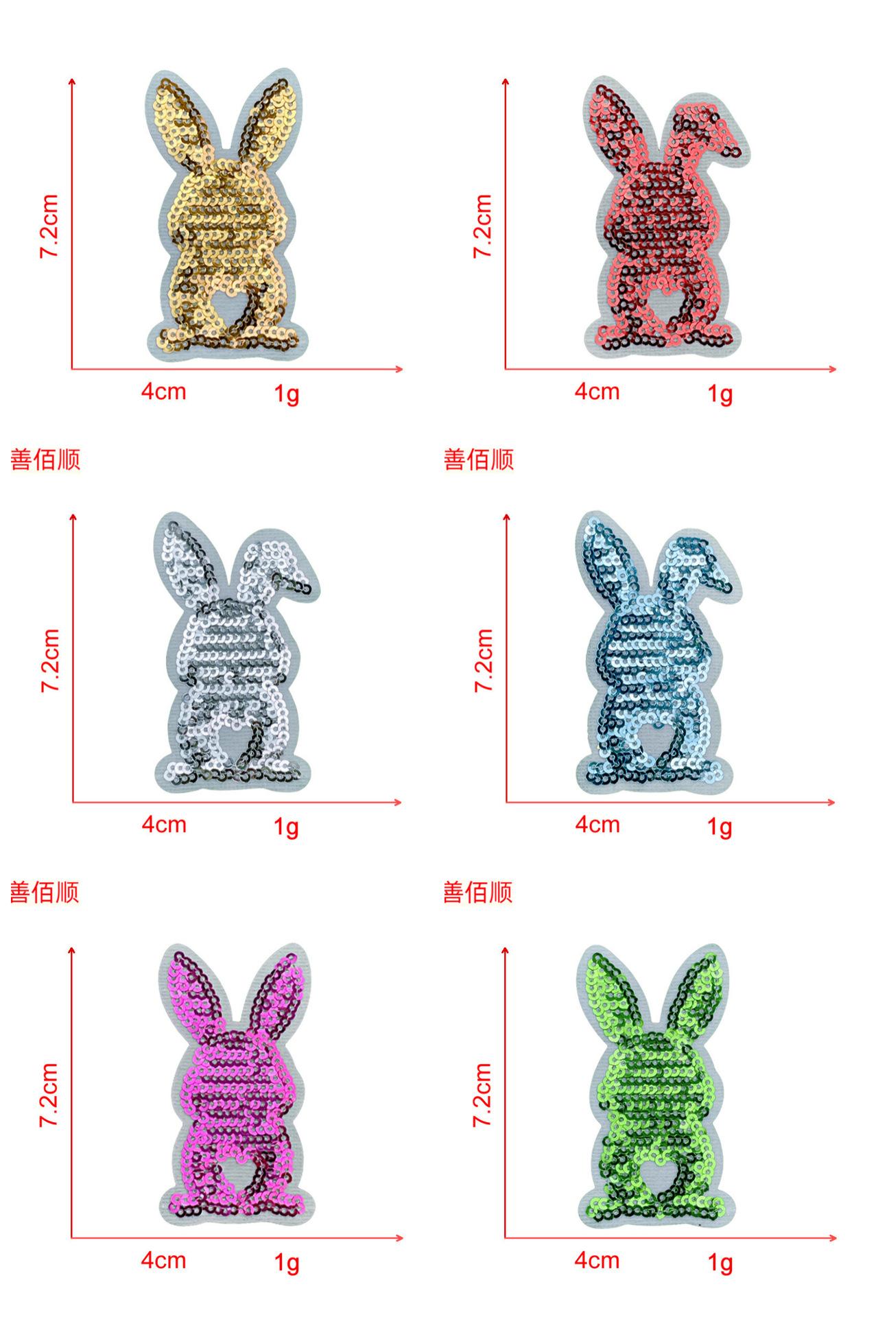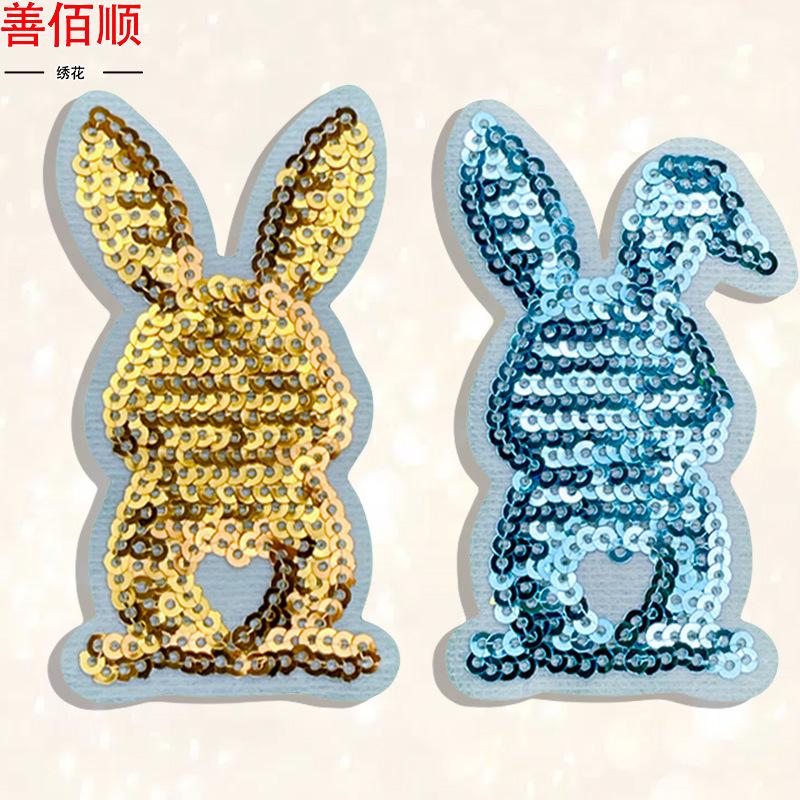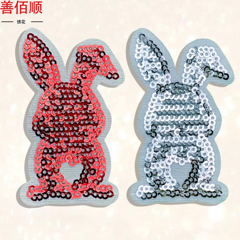 Pegatinas de tela con lentejuelas bordadas de conejo, accesorios de ropa adhesivos, parches de joyería de dibujos animados de moda, precio al por mayor.