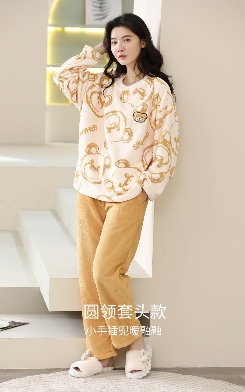Pijamas de mujer otoño e invierno de forro polar coral de franela para mujer 2023 nuevo traje de invierno fino para el hogar