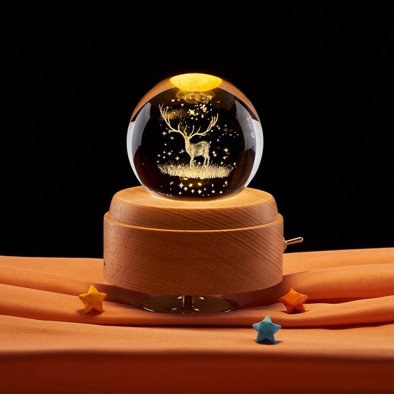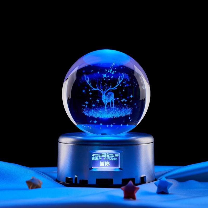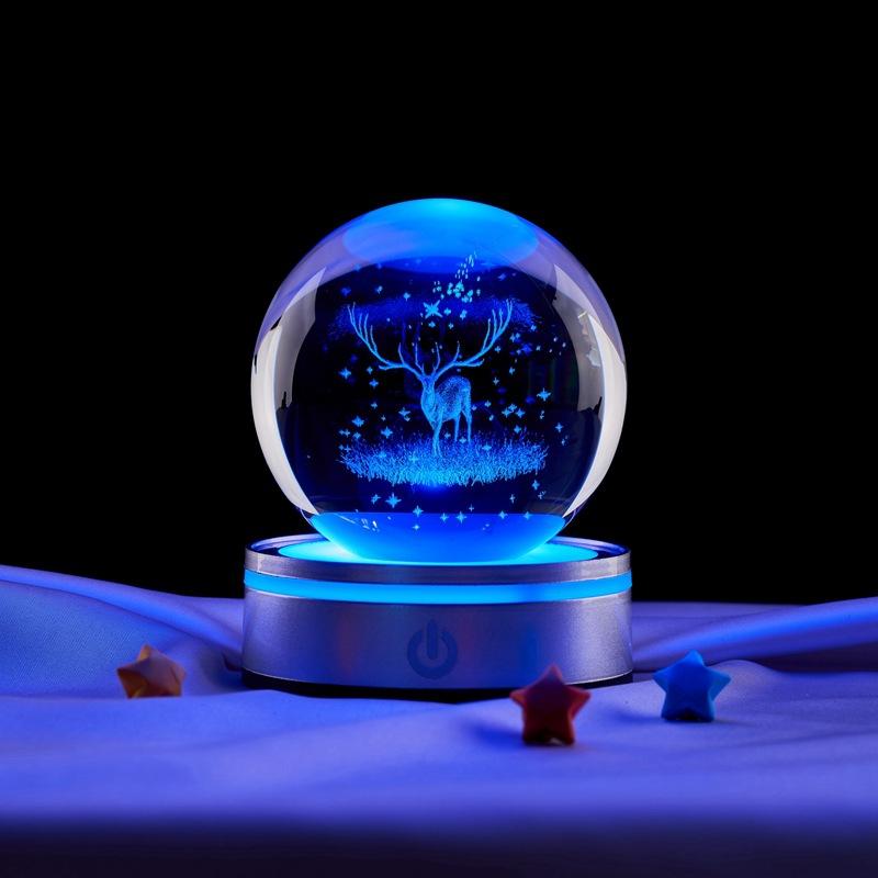 Bola de cristal con grabado láser 3D de alce, luminosa, romántica, luz nocturna, regalos navideños, venta al por mayor