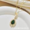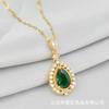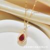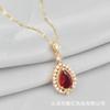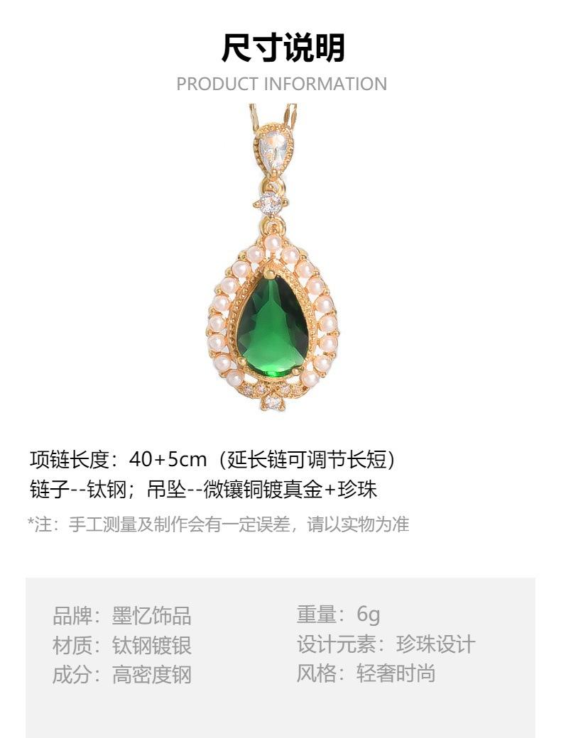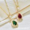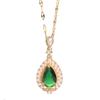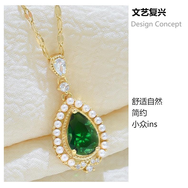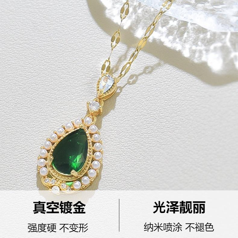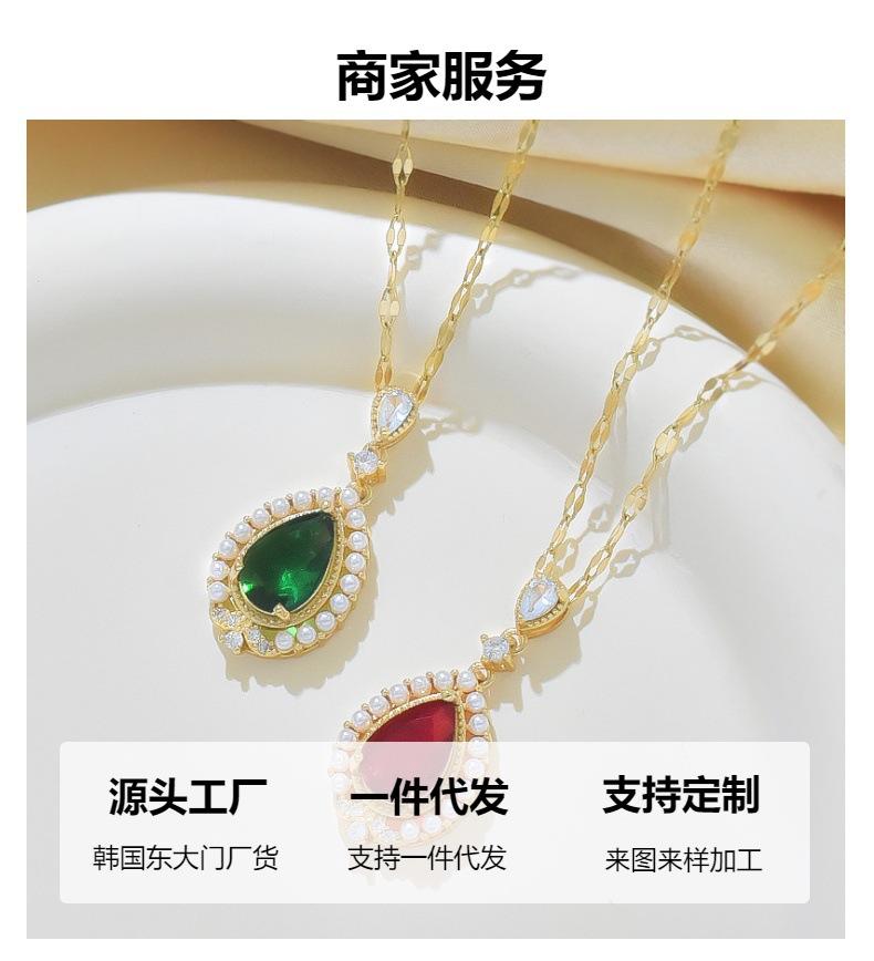 Collar de rubíes transfronterizos europeos y americanos para mujer, ligero, de lujo, vintage, con incrustaciones de perla, colgante de gota de agua de esmeralda, cadena de clavícula de acero de titanio.