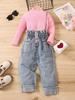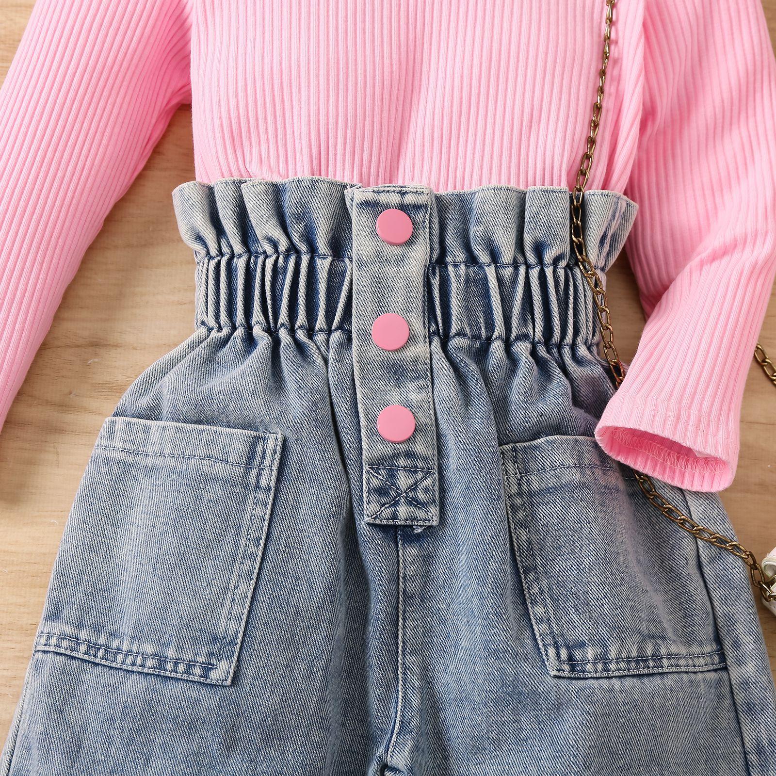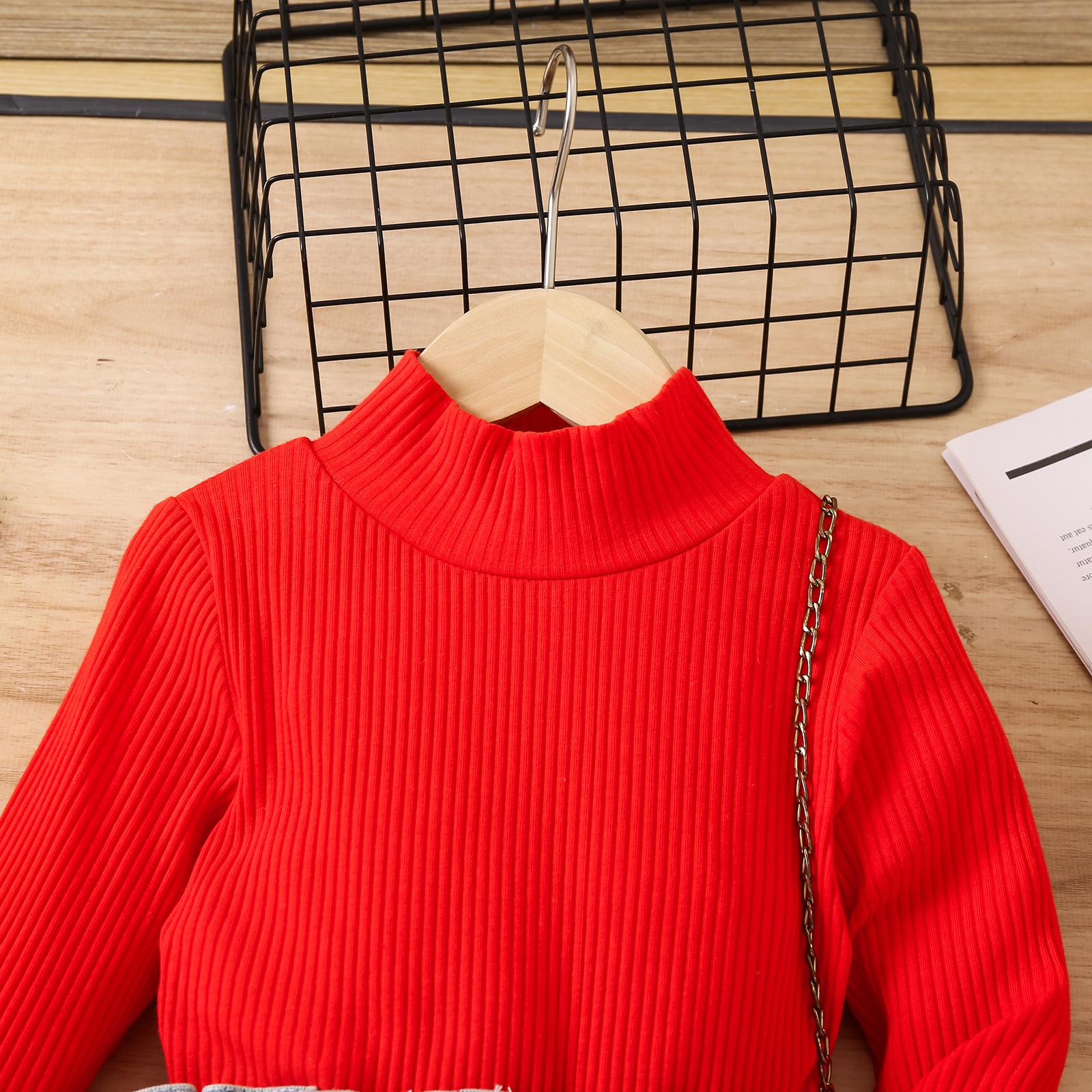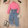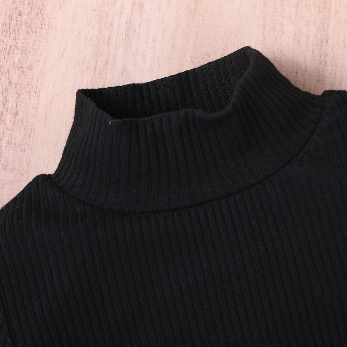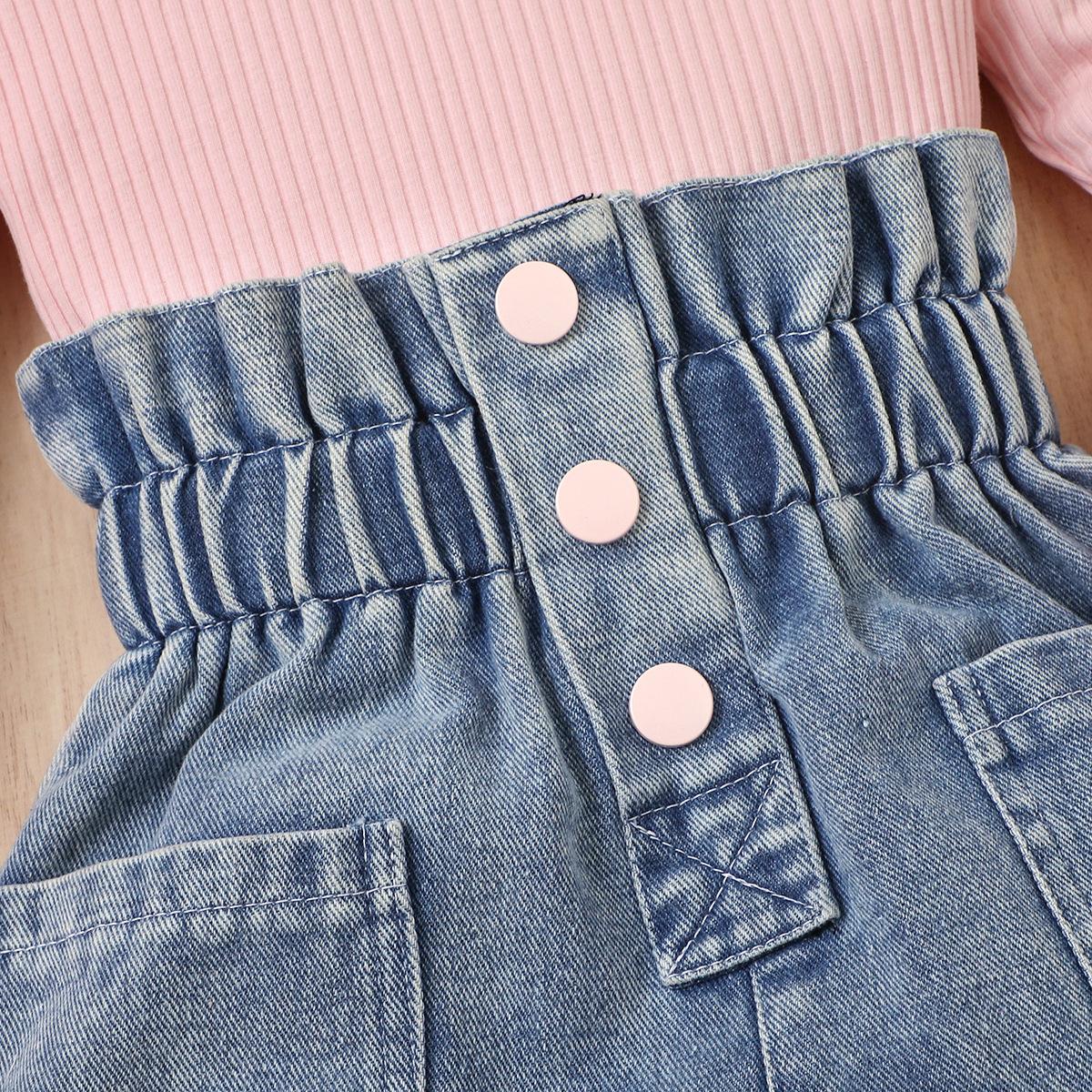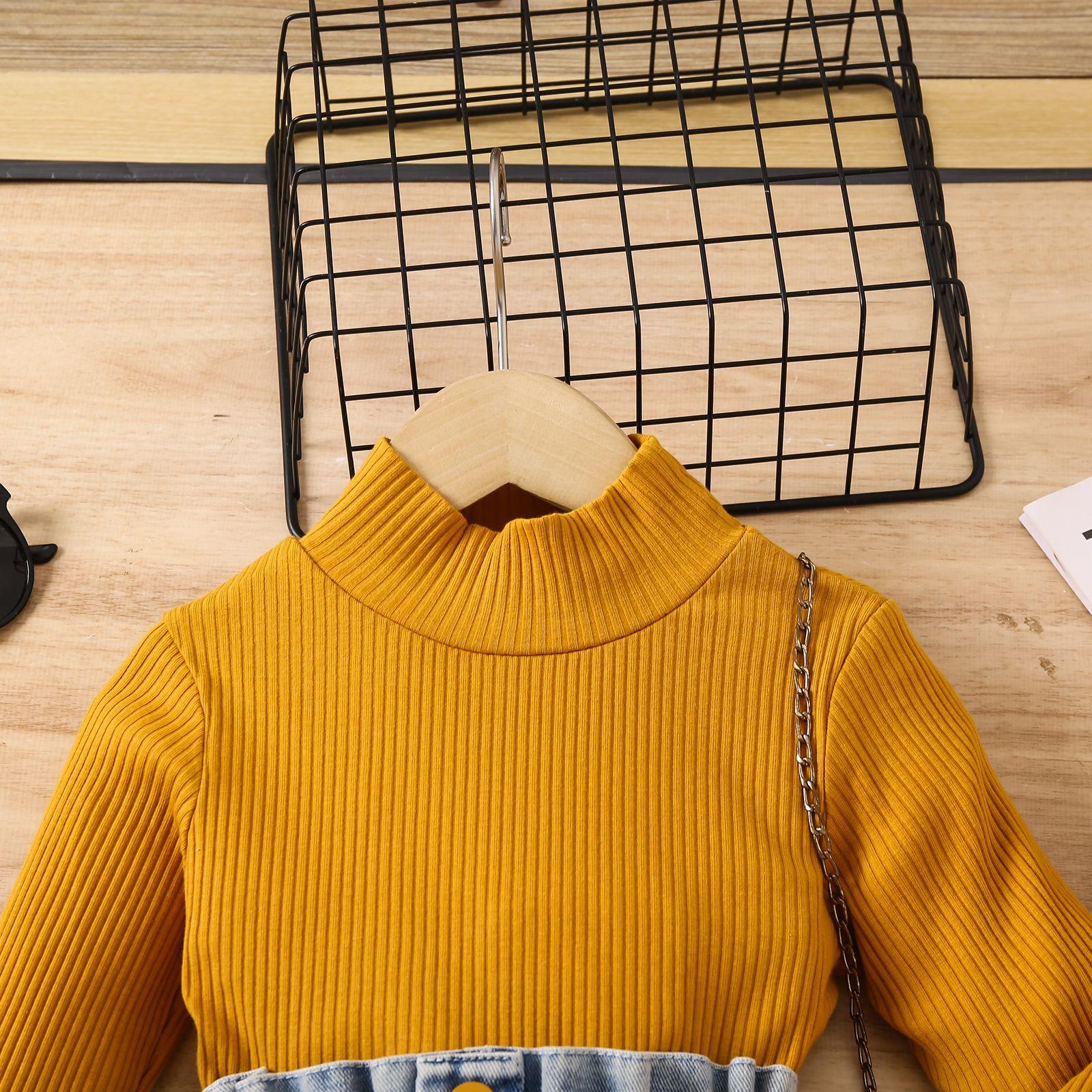 Ropa Infantil Transfronteriza Europea y Americana para Niñas Otoño e Invierno Color Sólido Manga Larga Cuello Alto Jersey Pantalones de Mezclilla con Volantes Conjunto de Dos Piezas