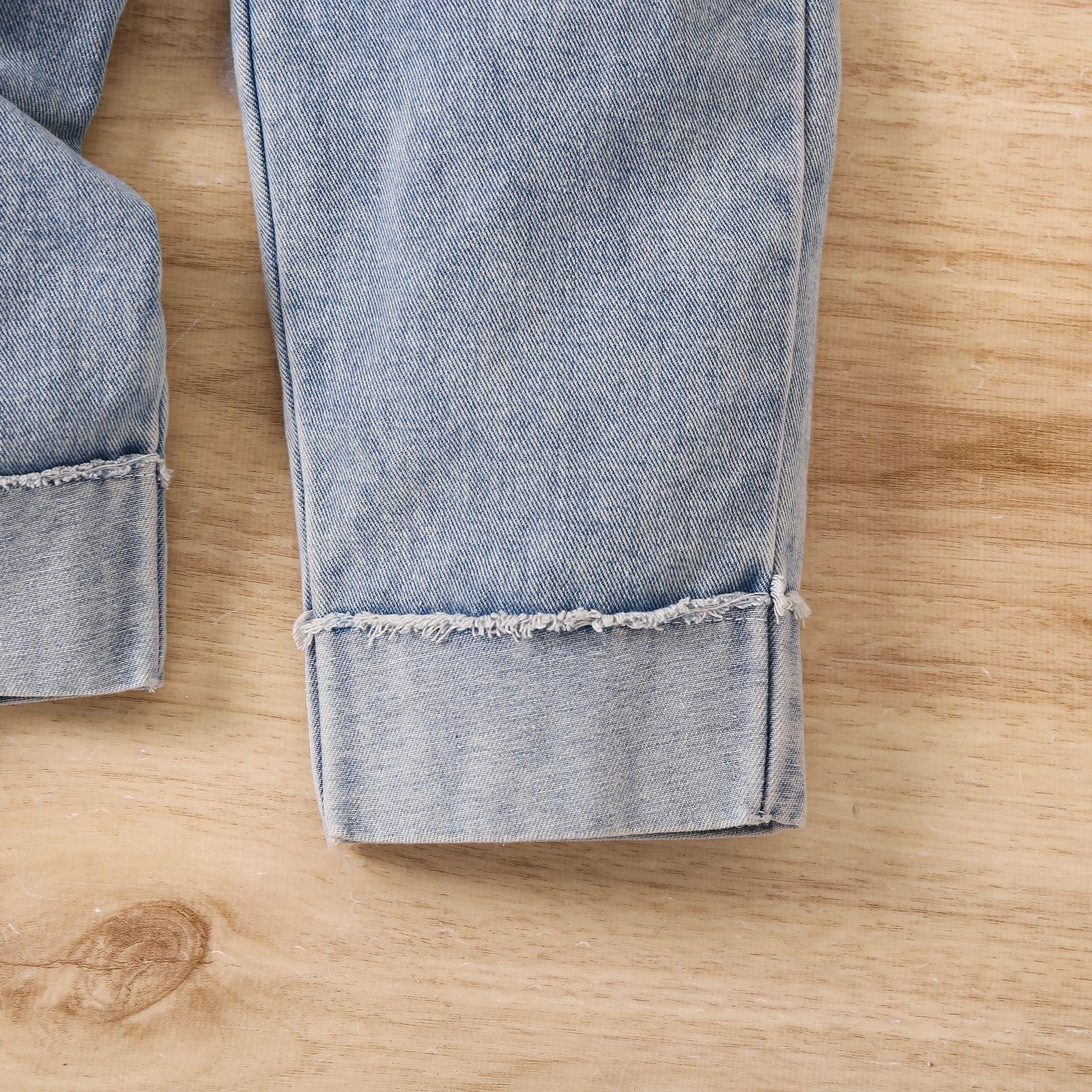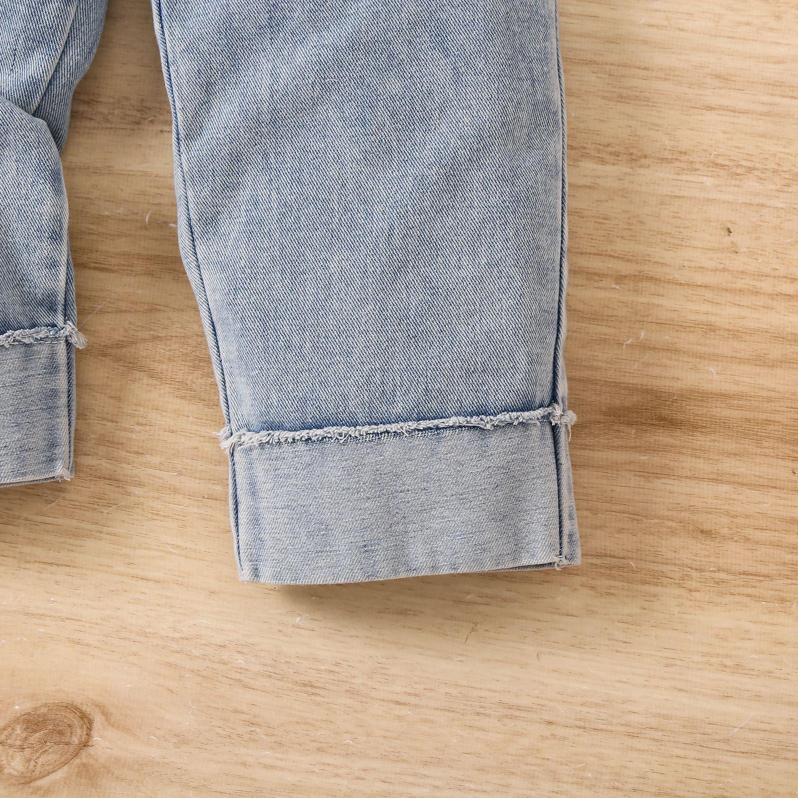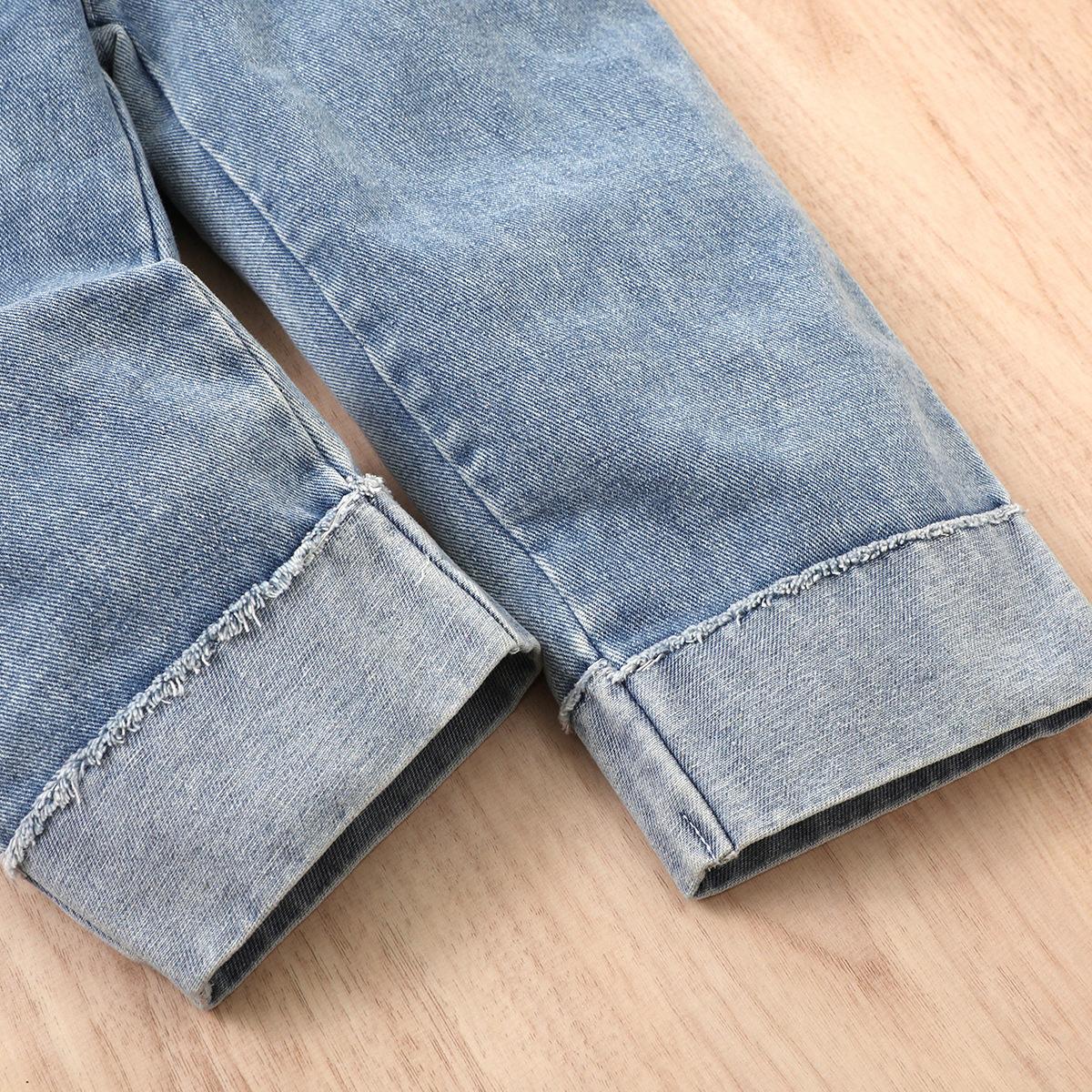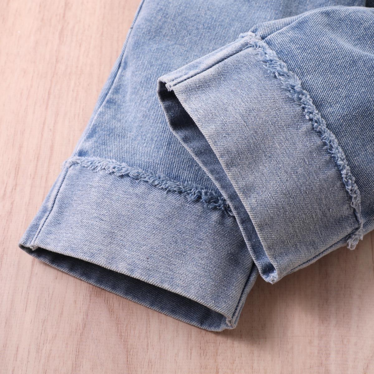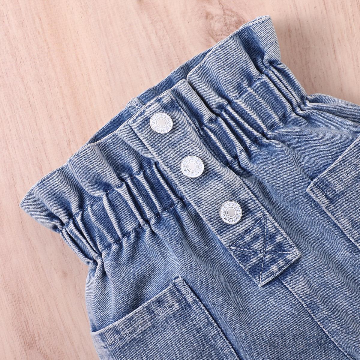 Ropa Infantil Transfronteriza Europea y Americana para Niñas Otoño e Invierno Color Sólido Manga Larga Cuello Alto Jersey Pantalones de Mezclilla con Volantes Conjunto de Dos Piezas