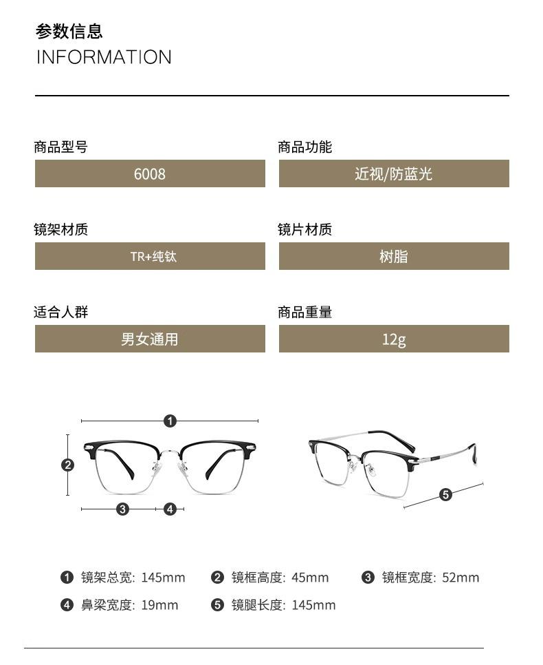 Lentes Danyang ultraligeros de titanio puro de media montura para miopía, montura de titanio para hombre, se pueden equipar con potencia, montura para ojos con luz anti-azul