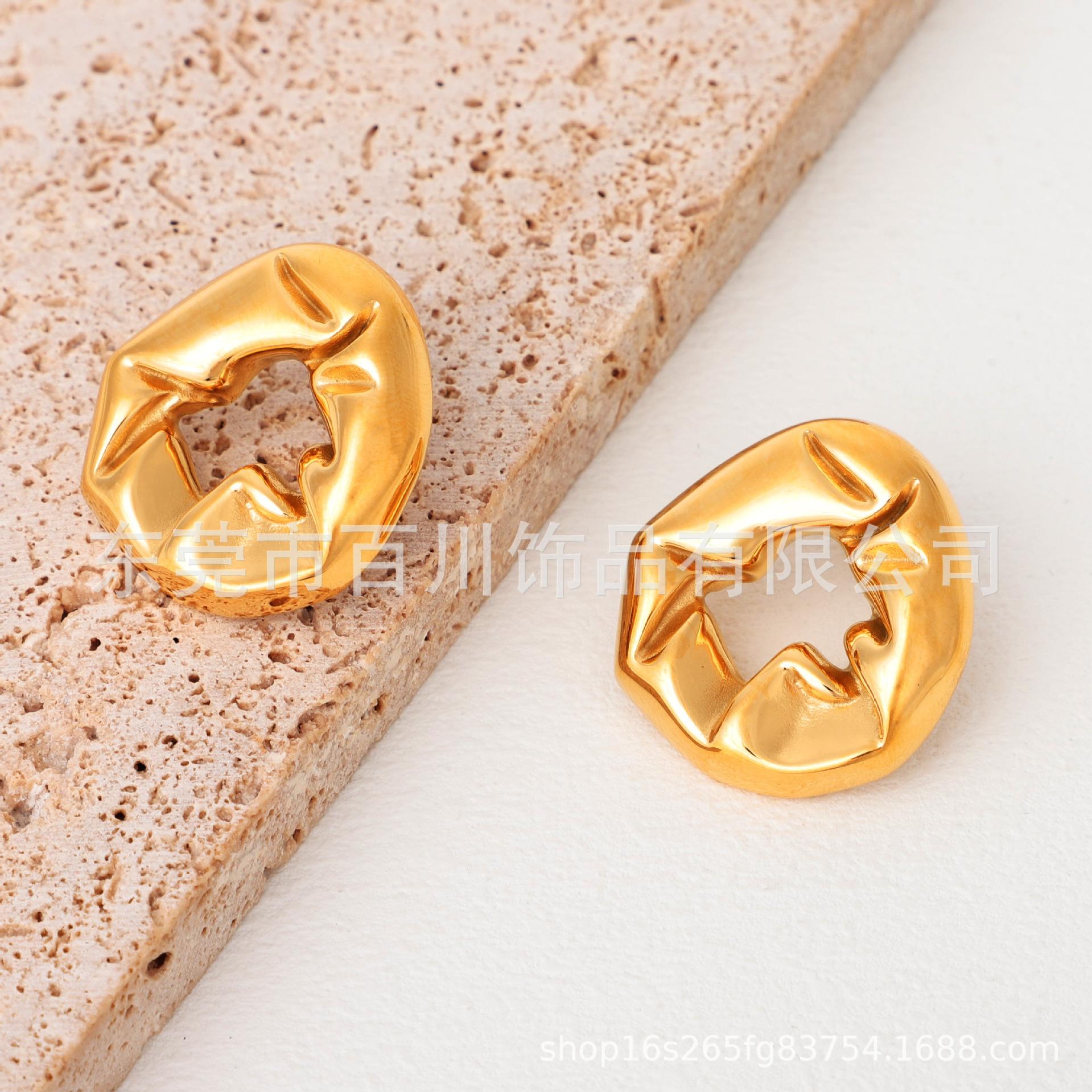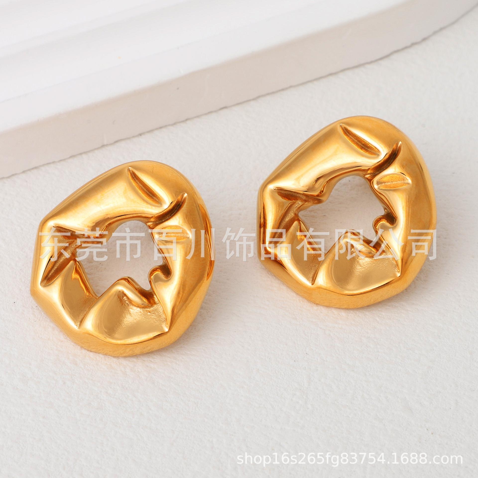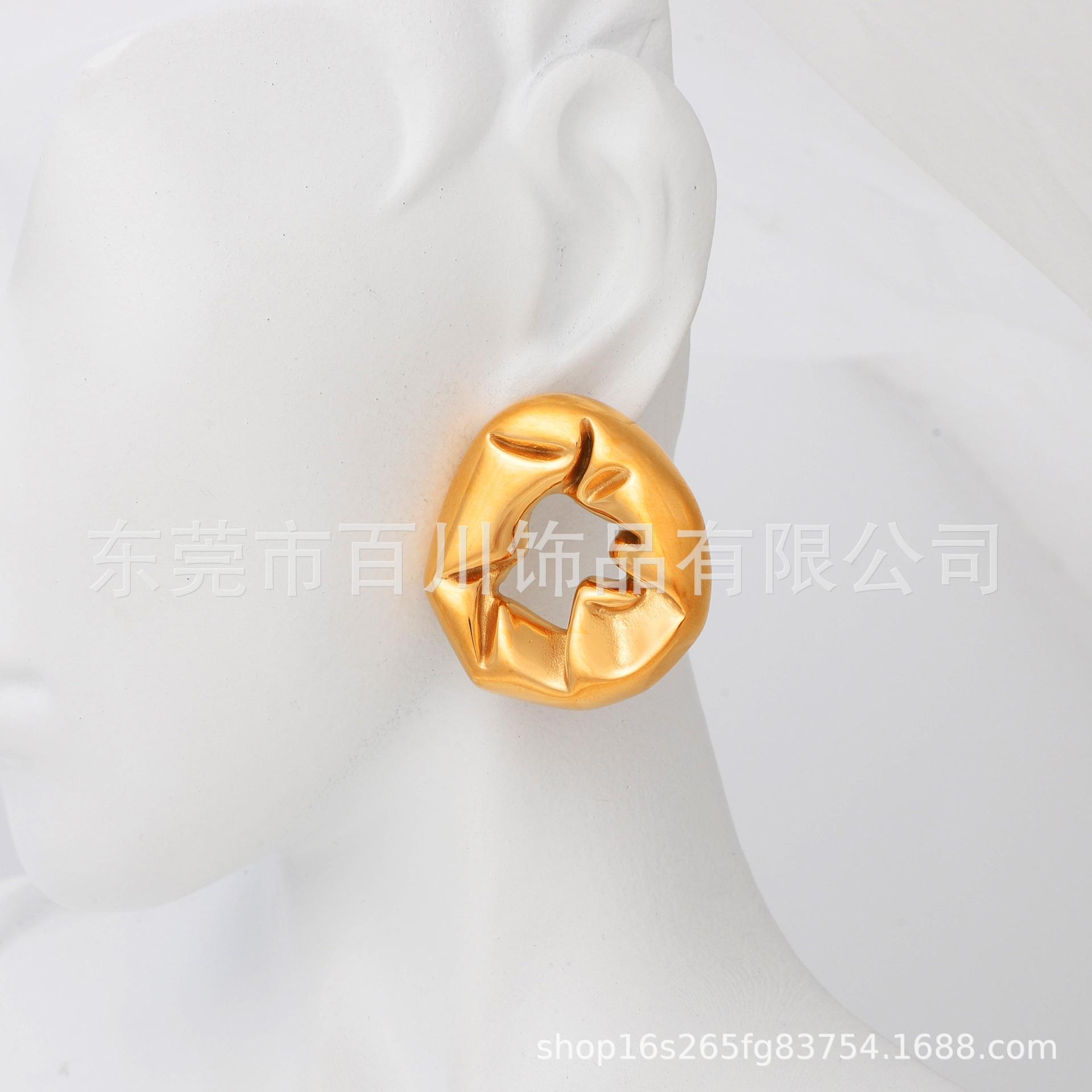 Compra INS estilo europeo y americano nicho diseño retro textura plisada metal aretes de moda aretes personalizados de moda para combinar con todo al por mayor en Joom.pro