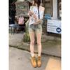 Pantalones vaqueros europeos y americanos de cintura ultrabaja, pantalones cortos de mezclilla de cintura baja para mujer, pantalones cortos de mezclilla americanos rotos de talla grande con alta elasticidad