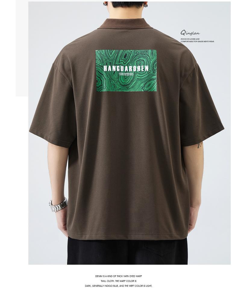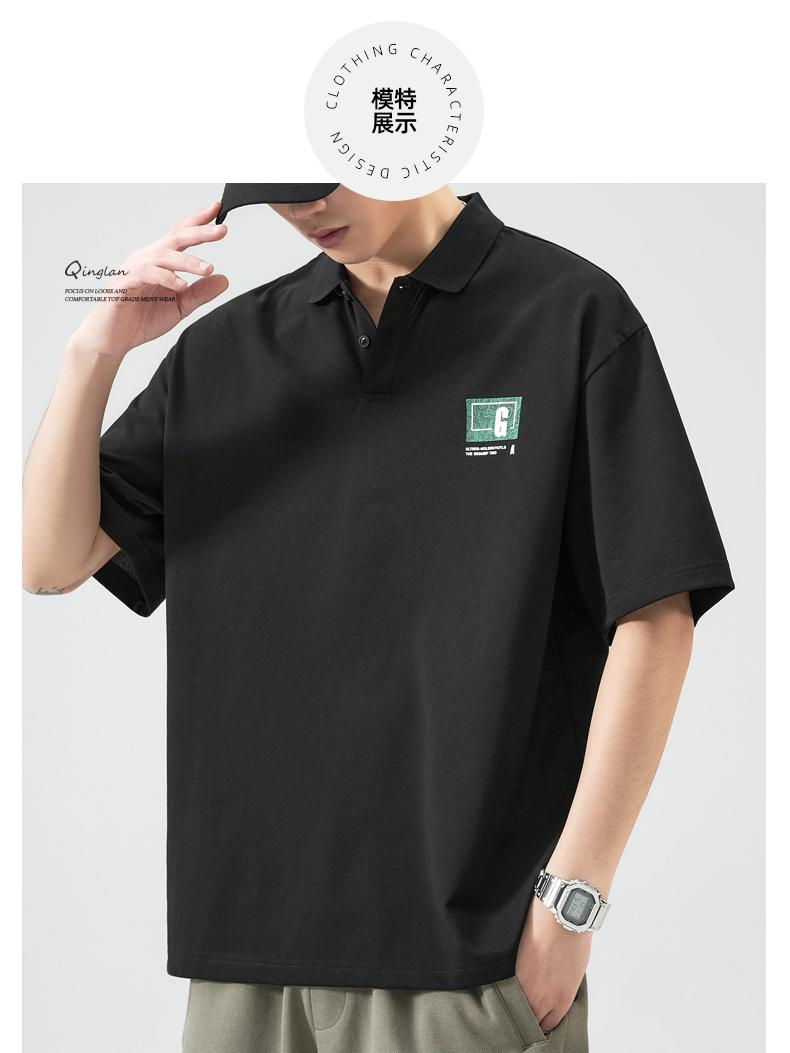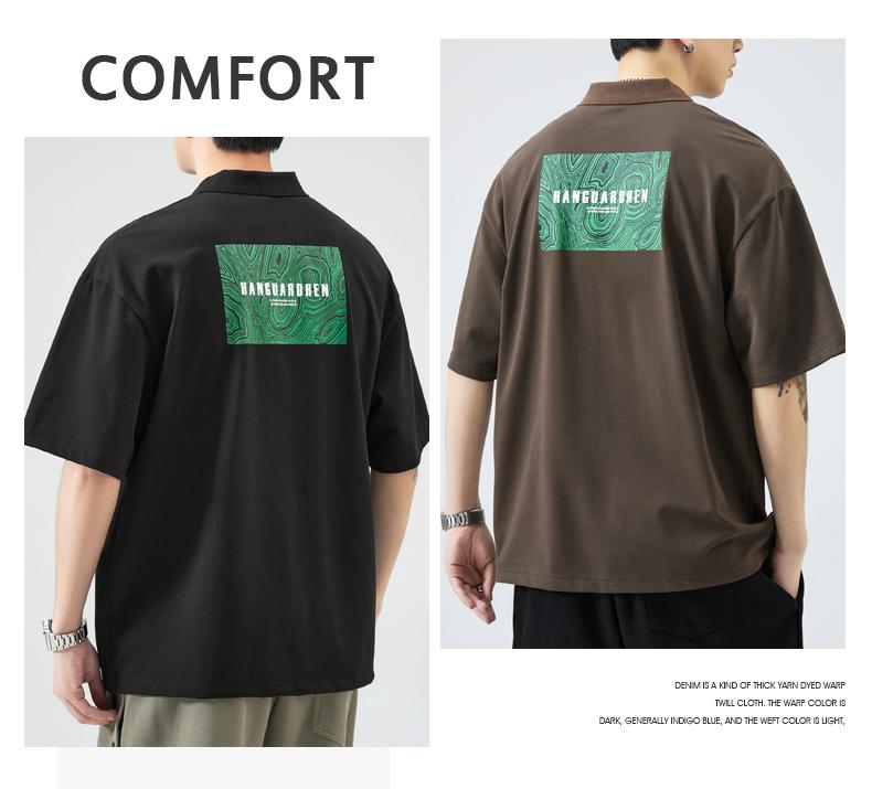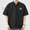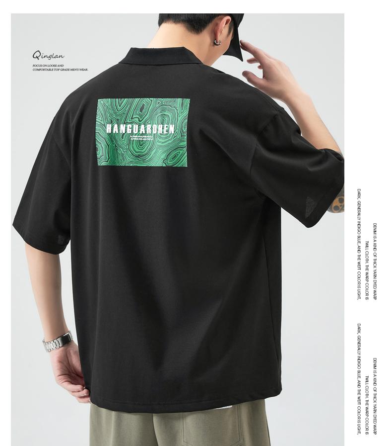 Camiseta de Verano Negra con Cuello Camisero para Hombre de Manga Corta Tipo Polo Ropa de Hombre Estampada Moderna Holgada Manga 5/8