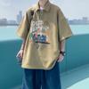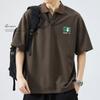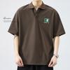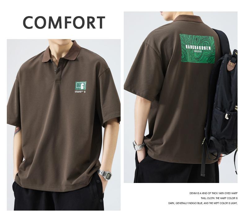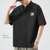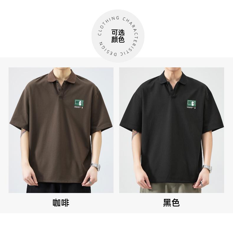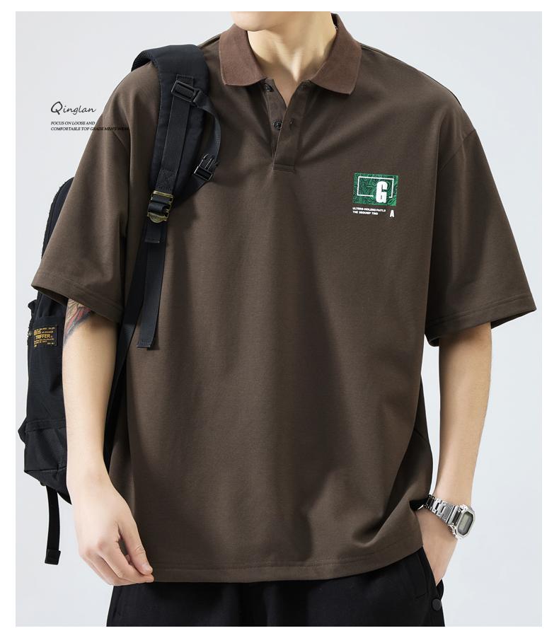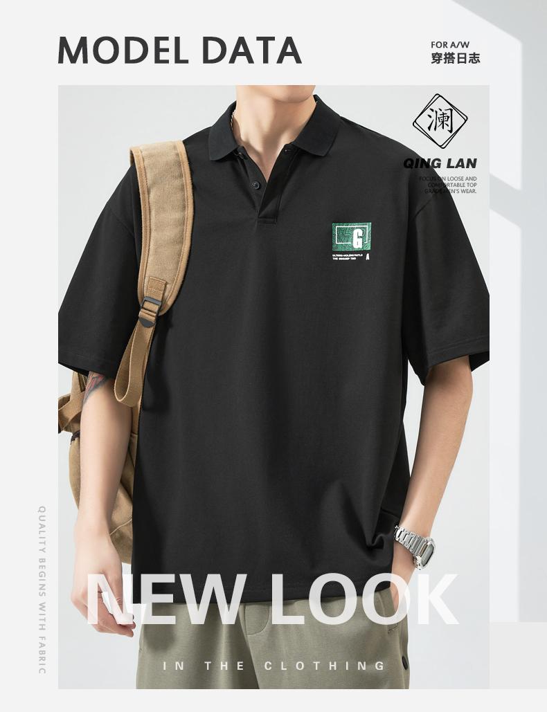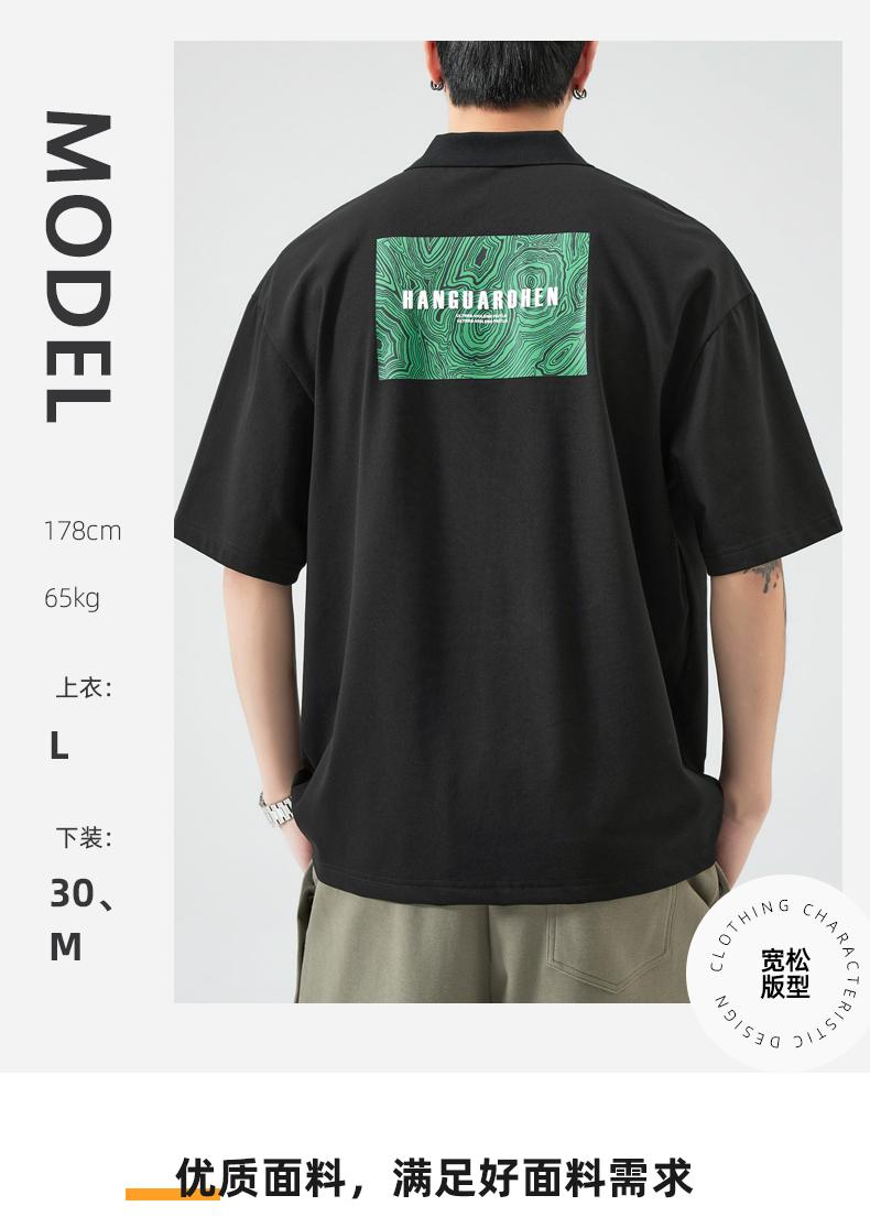 Camiseta de Verano Negra con Cuello Camisero para Hombre de Manga Corta Tipo Polo Ropa de Hombre Estampada Moderna Holgada Manga 5/8