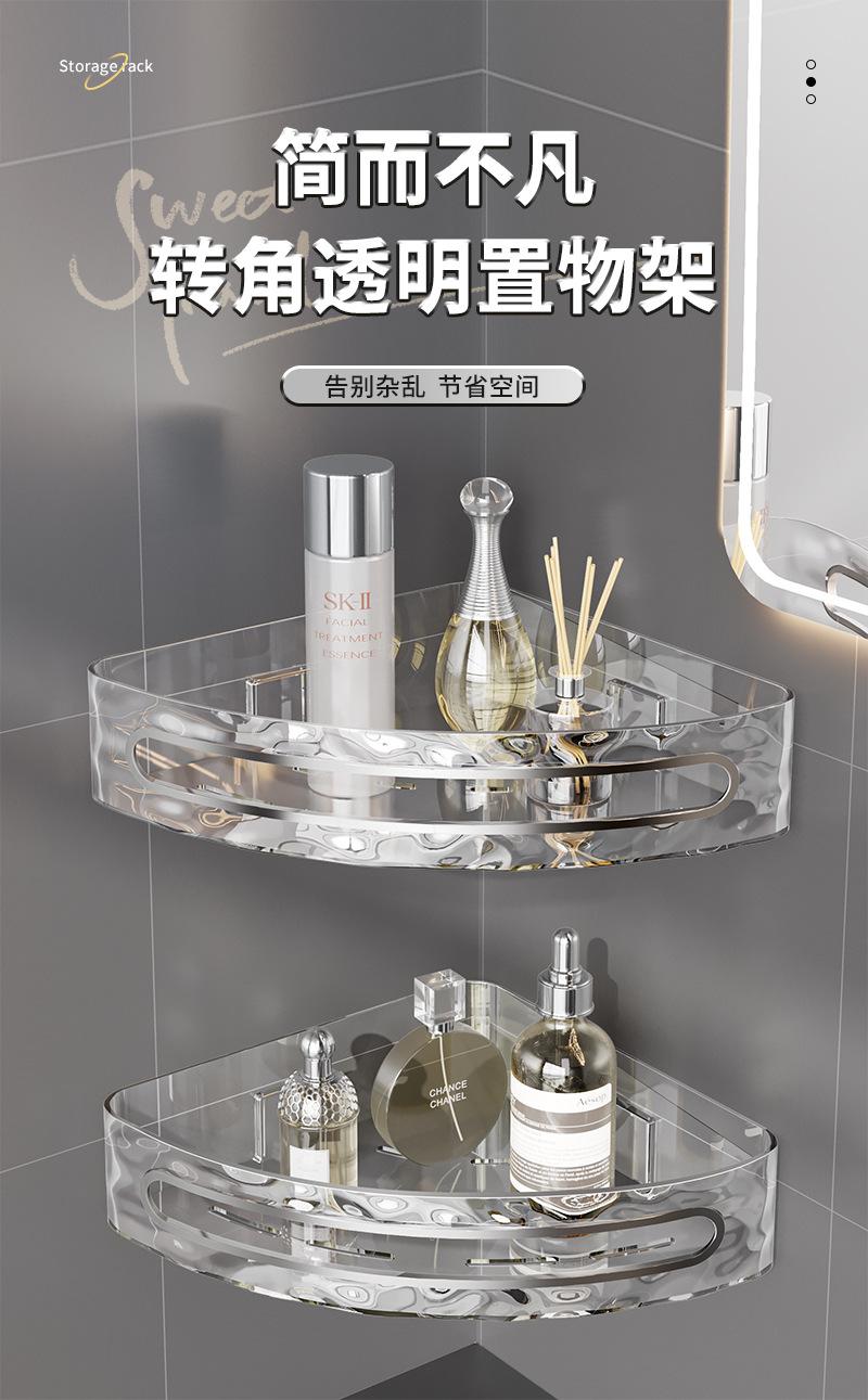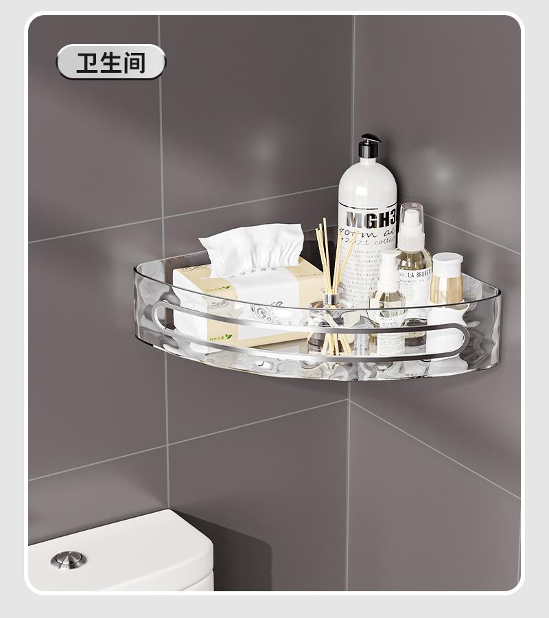 Estante de almacenamiento triangular transparente para inodoro, estante de pared sin perforaciones, mueble de baño, lavabo, estante de almacenamiento de esquina