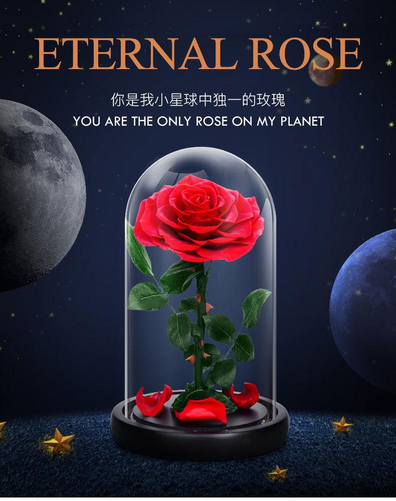 Caja de regalo con tapa de cristal de la flor inmortal creativa del Principito, regalo chino 520 para el Día de San Valentín, venta al por mayor de la flor inmortal del Principito