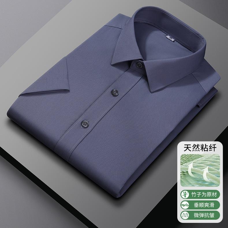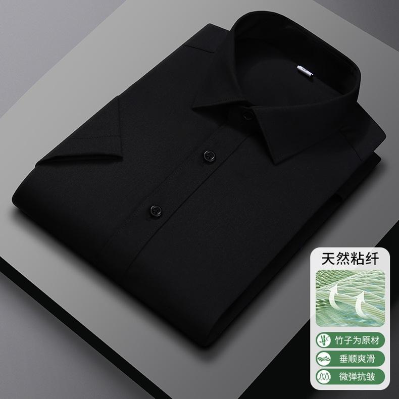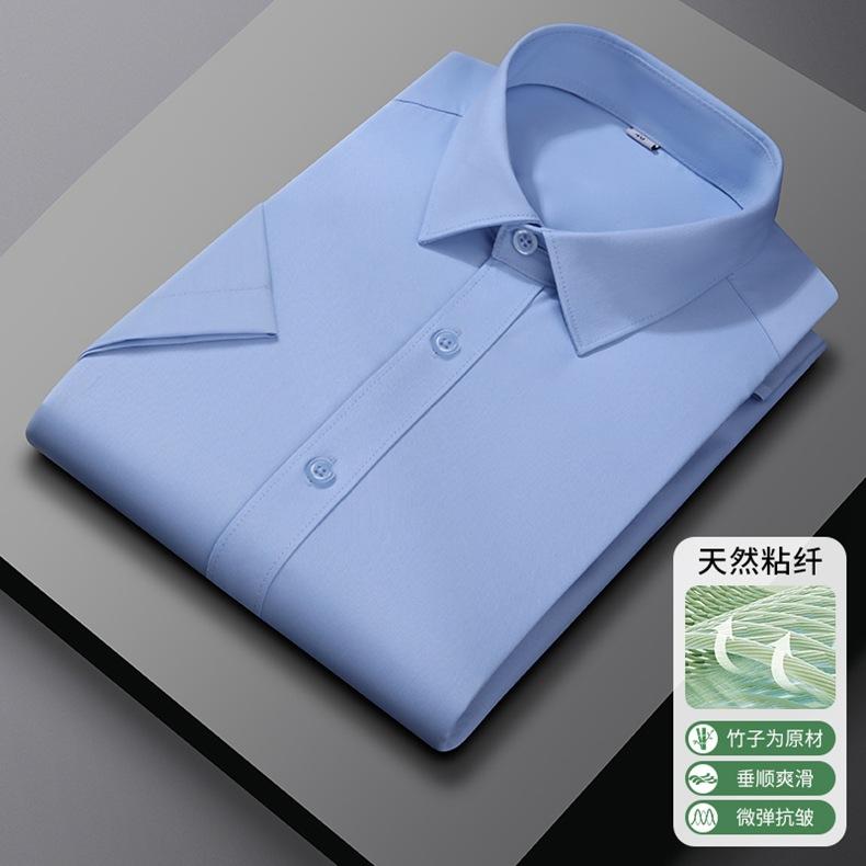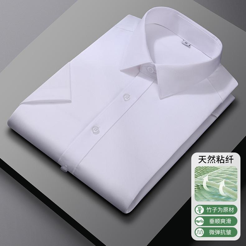 Verano Nueva Camisa Blanca de Media Manga para Hombre Ropa de Trabajo Elástica Sin Planchado Color Sólido Fibra de Bambú Camisa de Manga Corta para Hombre