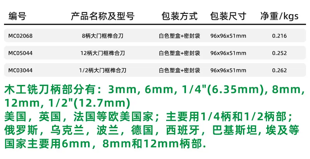 Patrón 8/12/12.7 Fresa de Mortaja de Marco Grande, Fresa para Puerta de Gabinete de Máquina de Tallado, Fresa para Puerta de Cocina, Fresa para Carpintería de Puerta de Gabinete
