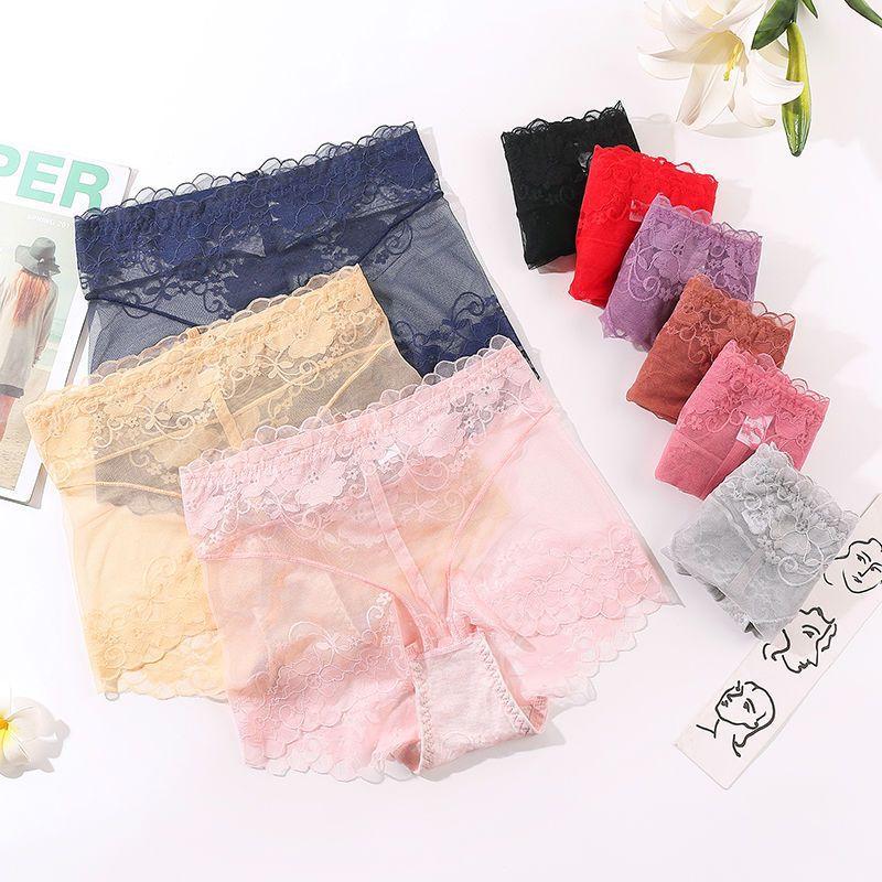 Ropa Interior de Encaje de Cintura Alta para Mujer, Transpirable, Antibacteriana, Malla sin Marcas, Transparente Levanta Glúteos, Ropa Interior Ultrafina y Sexy con Control de Abdomen para Mujer