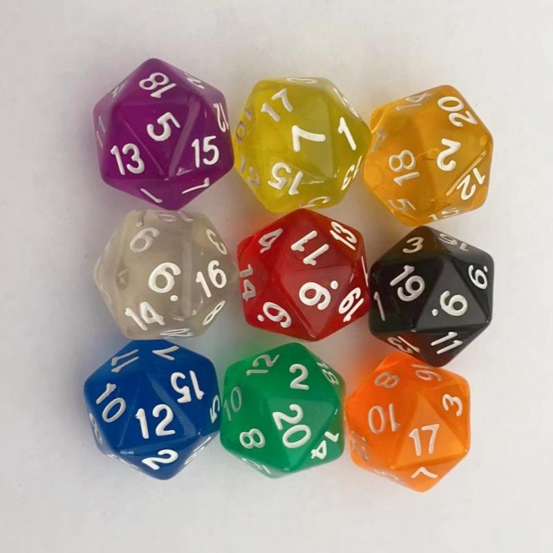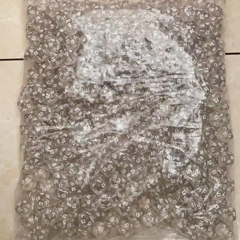 Venta caliente de dados de 20 caras, dados transparentes acrílicos, dados transparentes de varios tamaños, dados multicaras, venta directa de fábrica