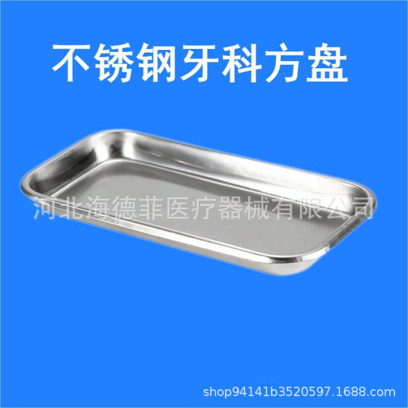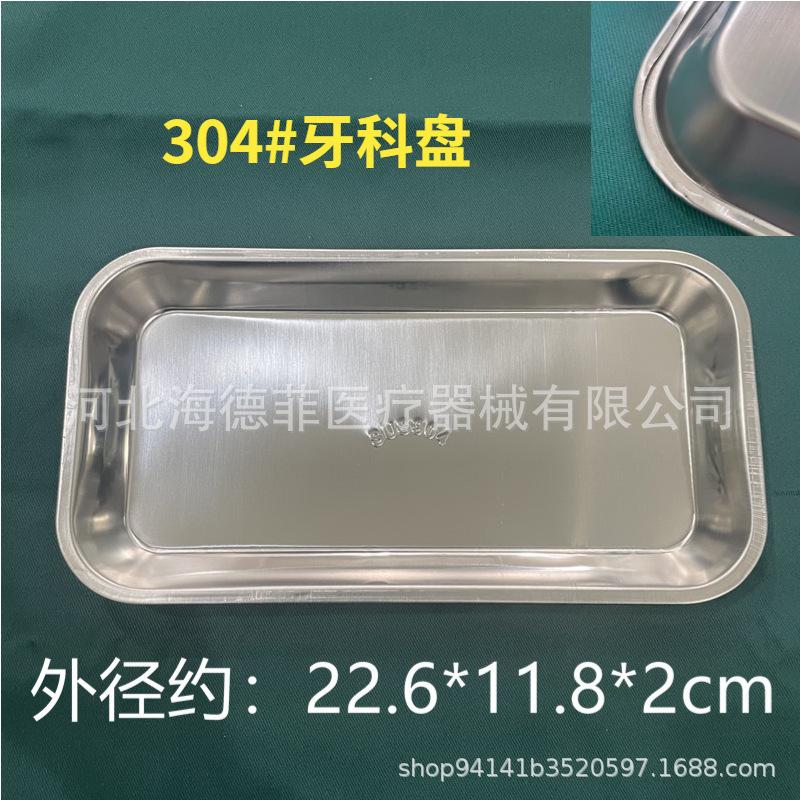 Bandeja Dental Cuadrada 304#: Espesor aproximadamente 0.5mm Diámetro Exterior Largo*Diámetro Exterior Ancho*Altura aproximadamente: 22.6*11.8*2cm 127g/pieza Cantidad por Caja: 300 piezas