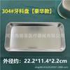 Bandeja Cuadrada Dental Deluxe 304#: Espesor aprox. 0.6mm Diámetro Exterior Longitud*Diámetro Exterior Ancho*Altura aprox.: 22.2*11.4*2.2cm 143g/pieza Cantidad por Caja: 300 piezas