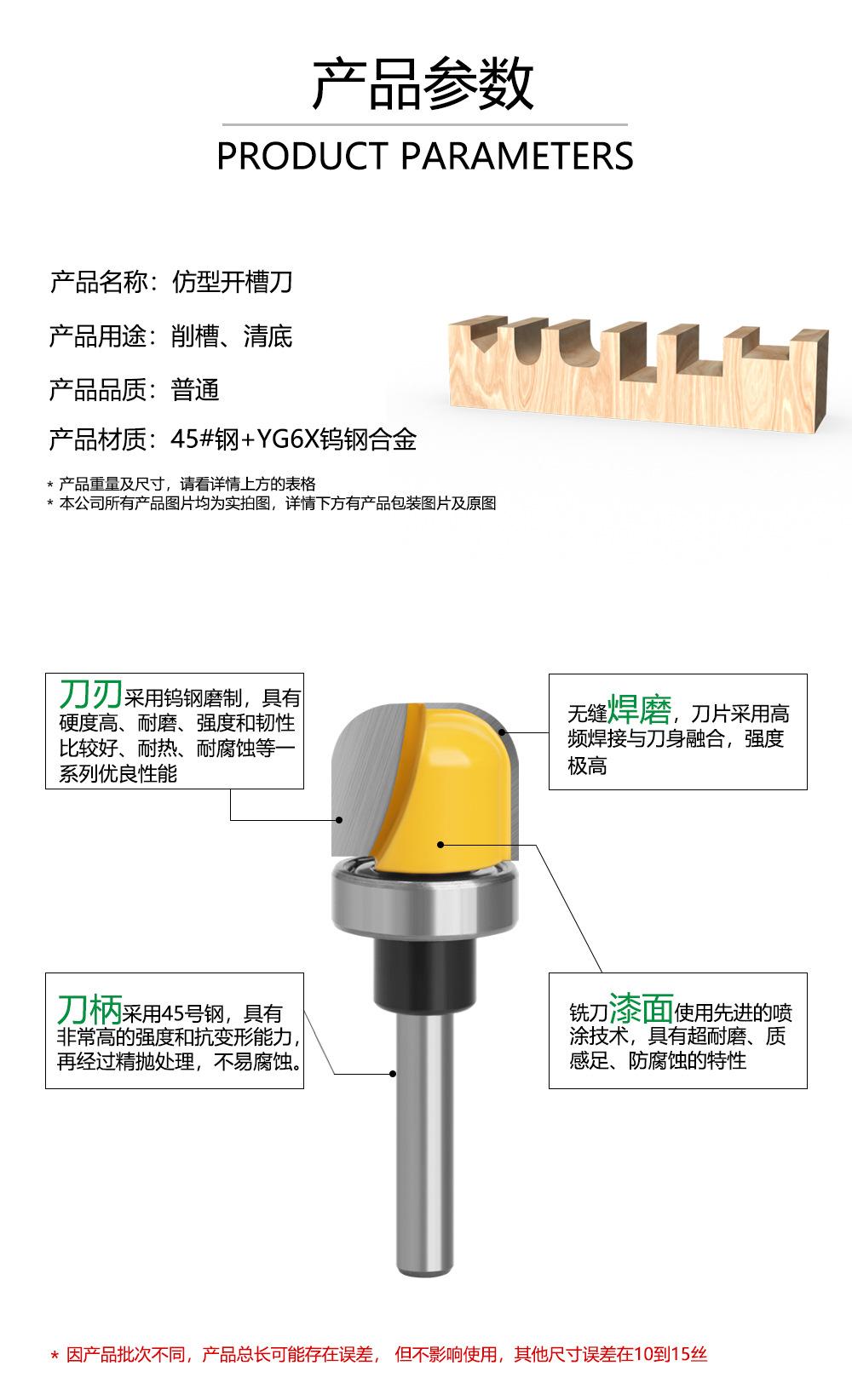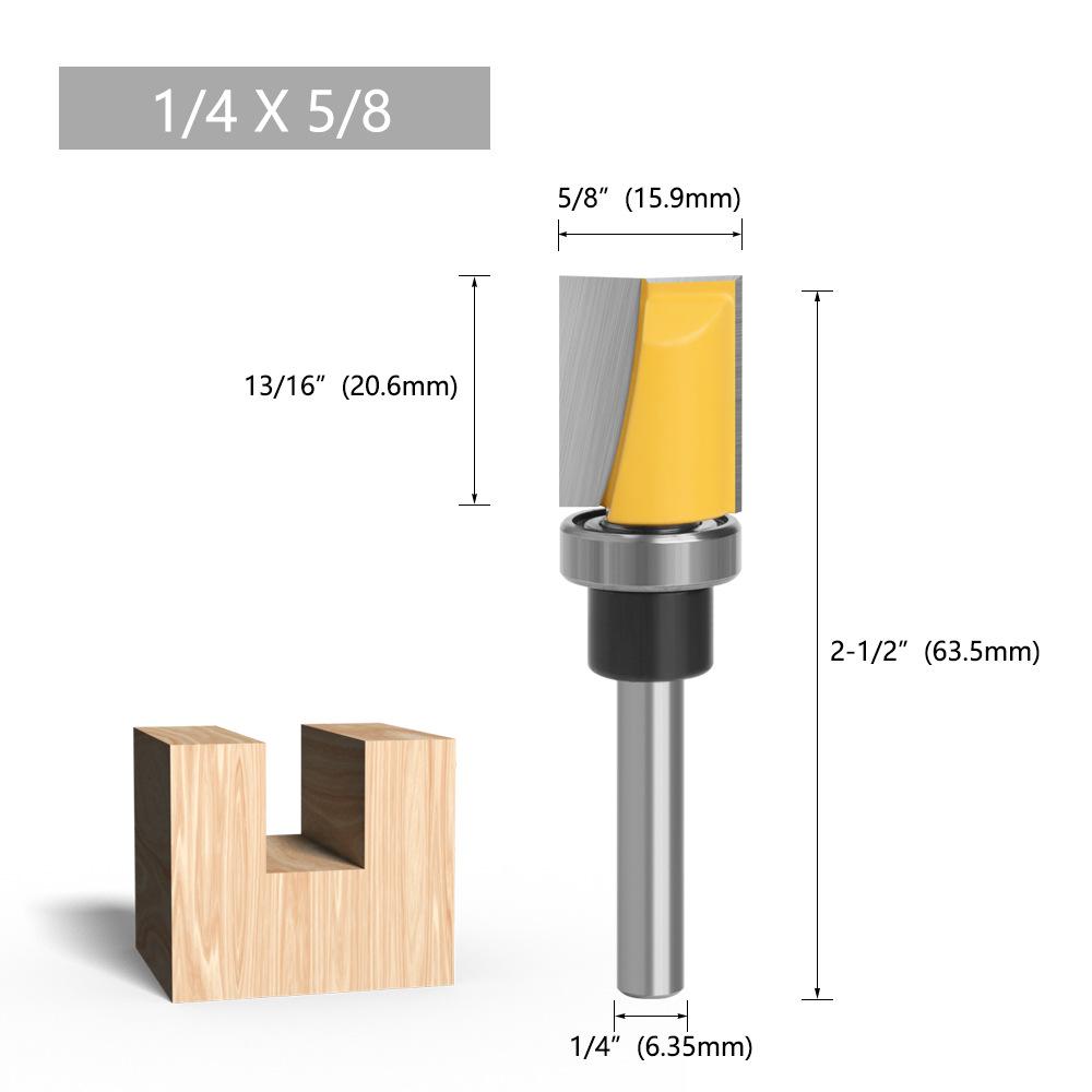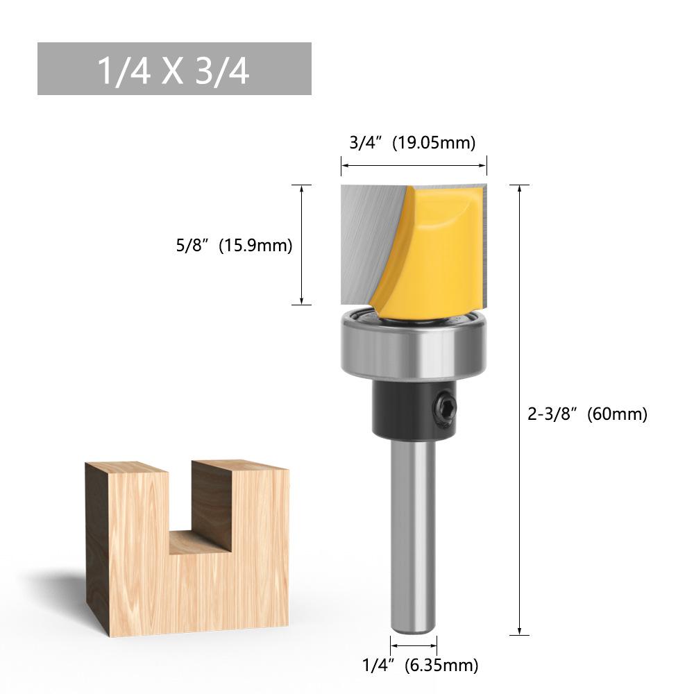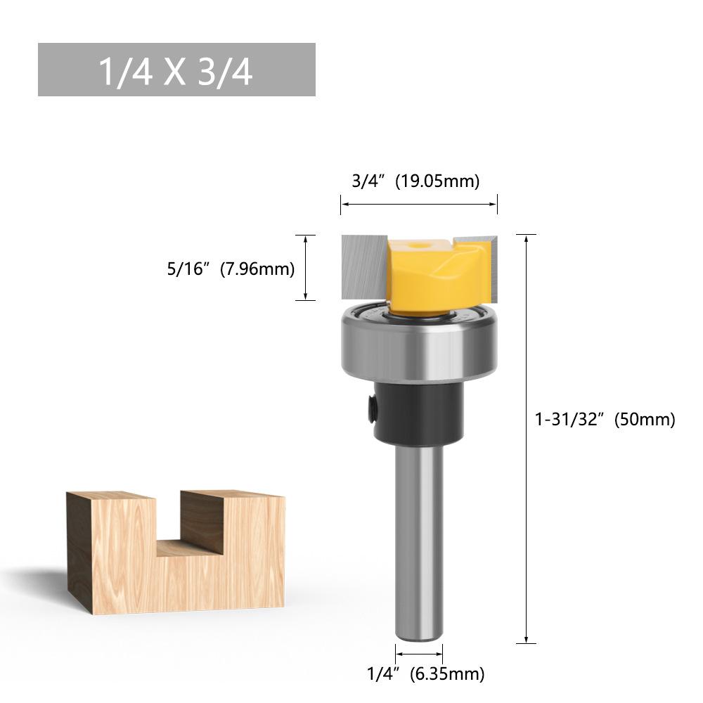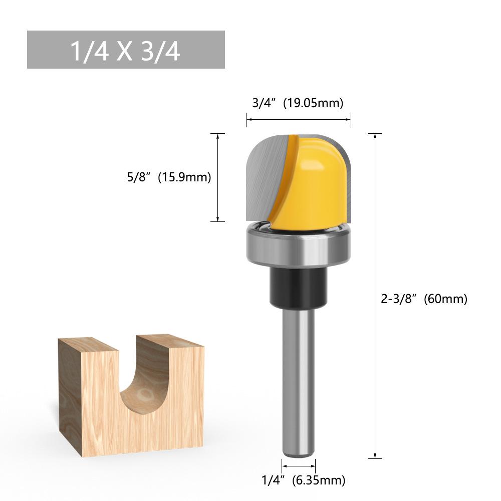 Los mangos de las fresas para carpintería incluyen: 3 mm, 6 mm, 1/4" (6,35 mm), 8 mm, 12 mm, 1/2" (12,7 mm)