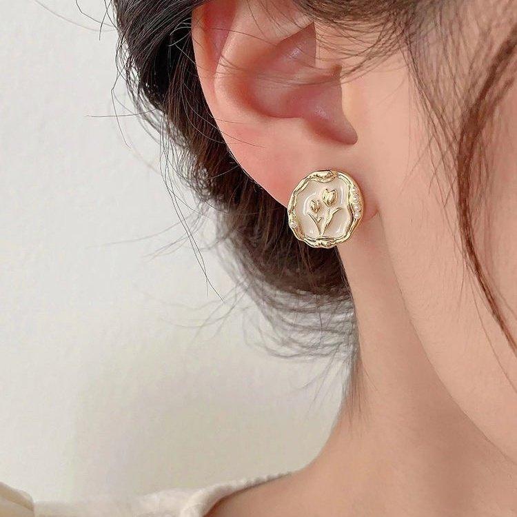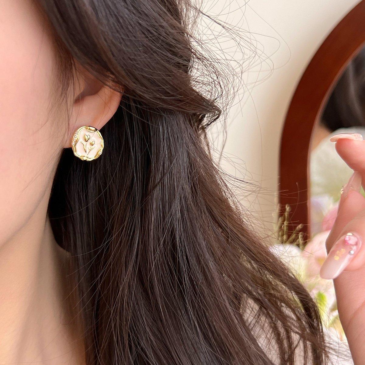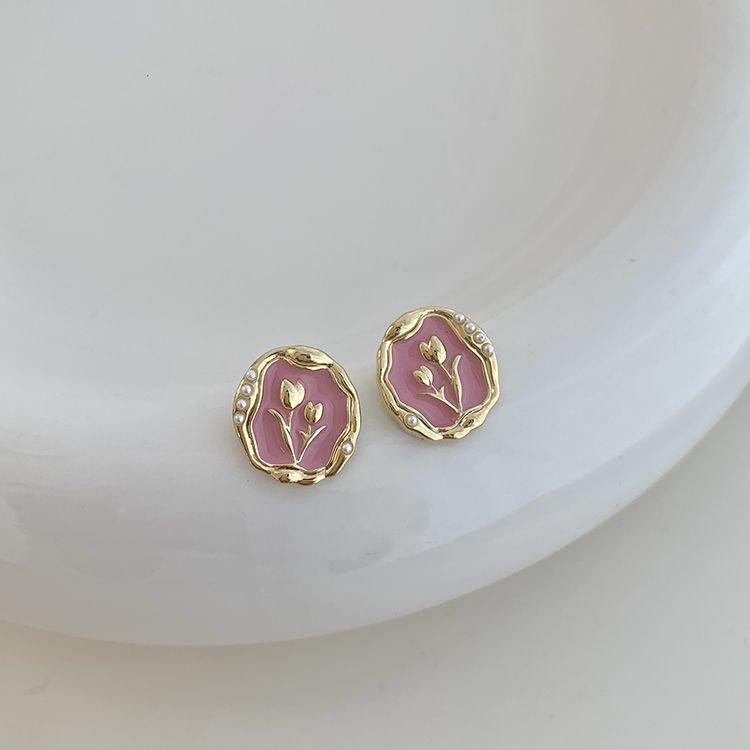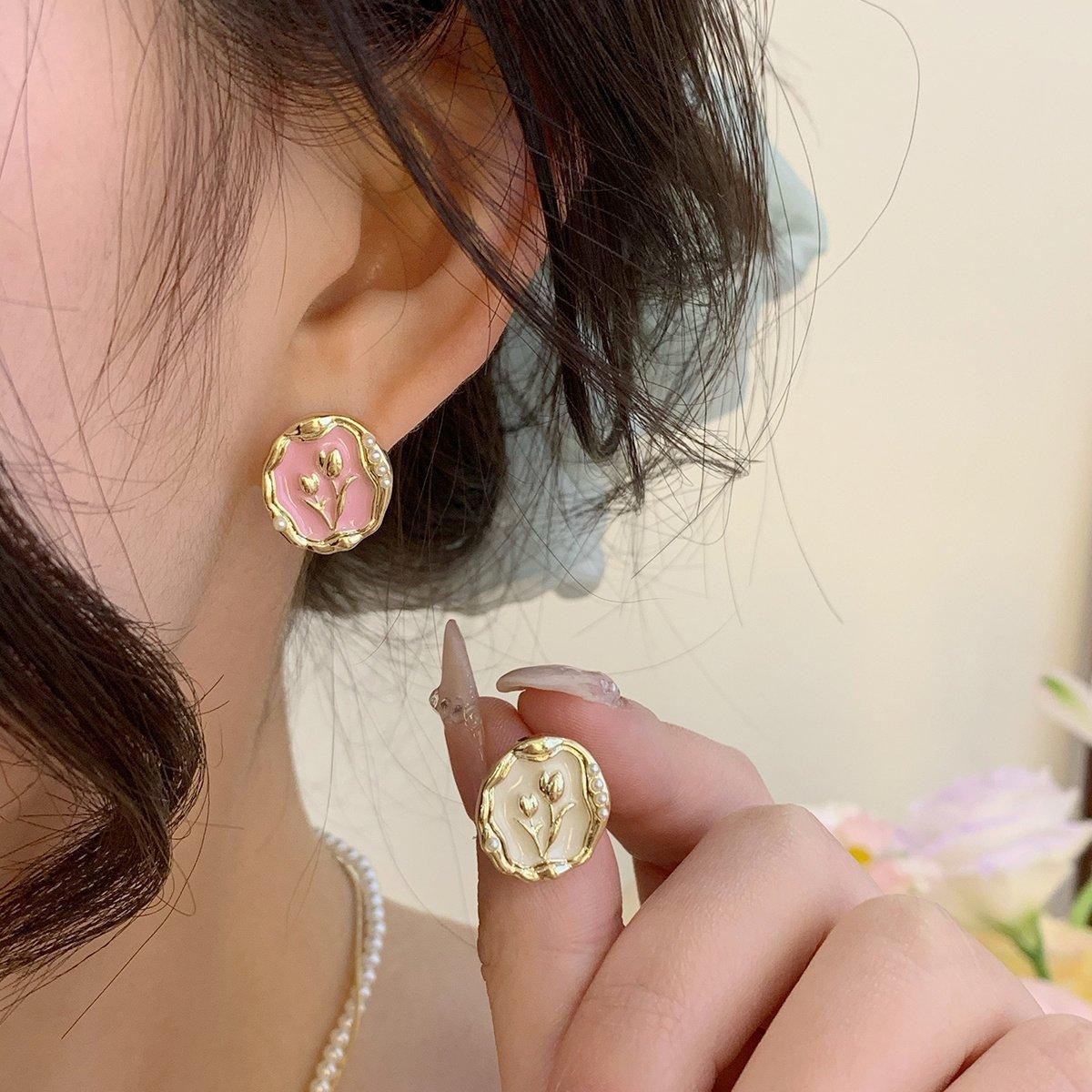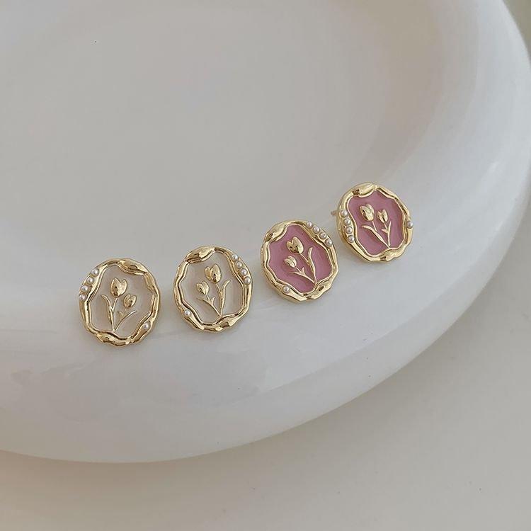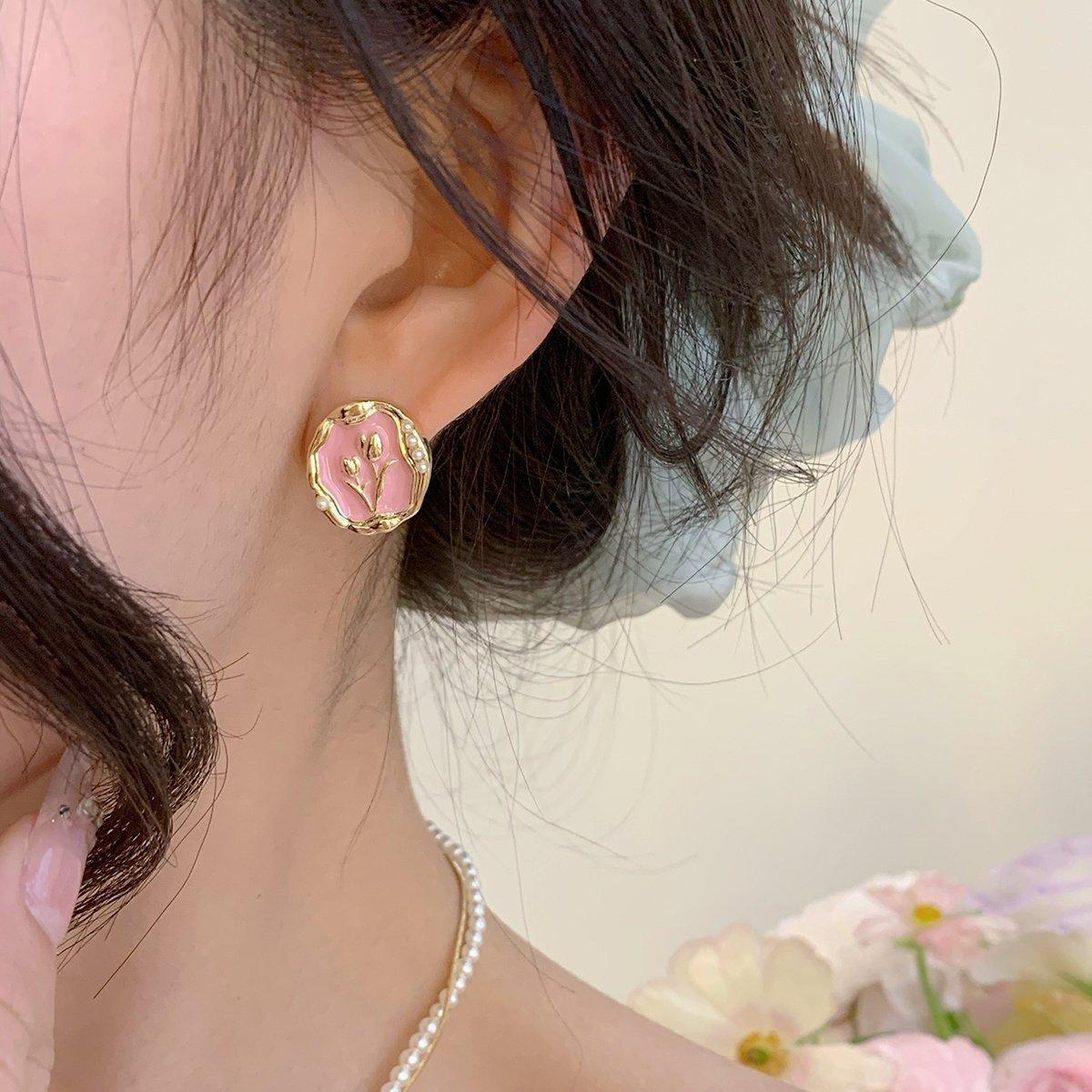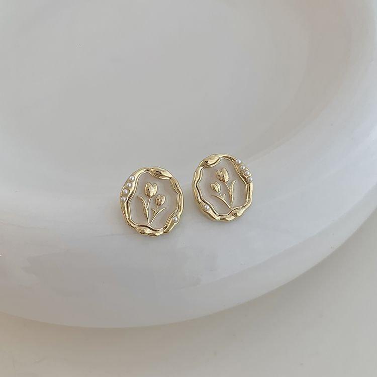 Exquisitos pendientes de tulipán con perlas 2023, elegantes y avanzados, nuevos pendientes con diseño de nicho irregular.