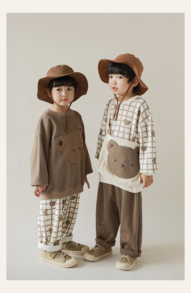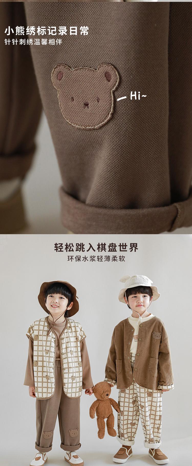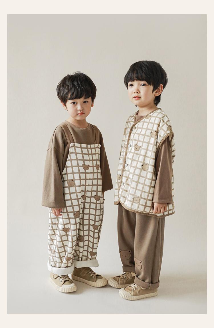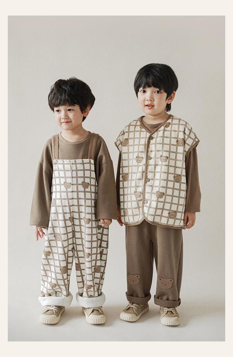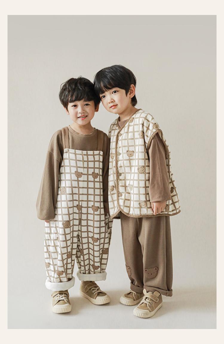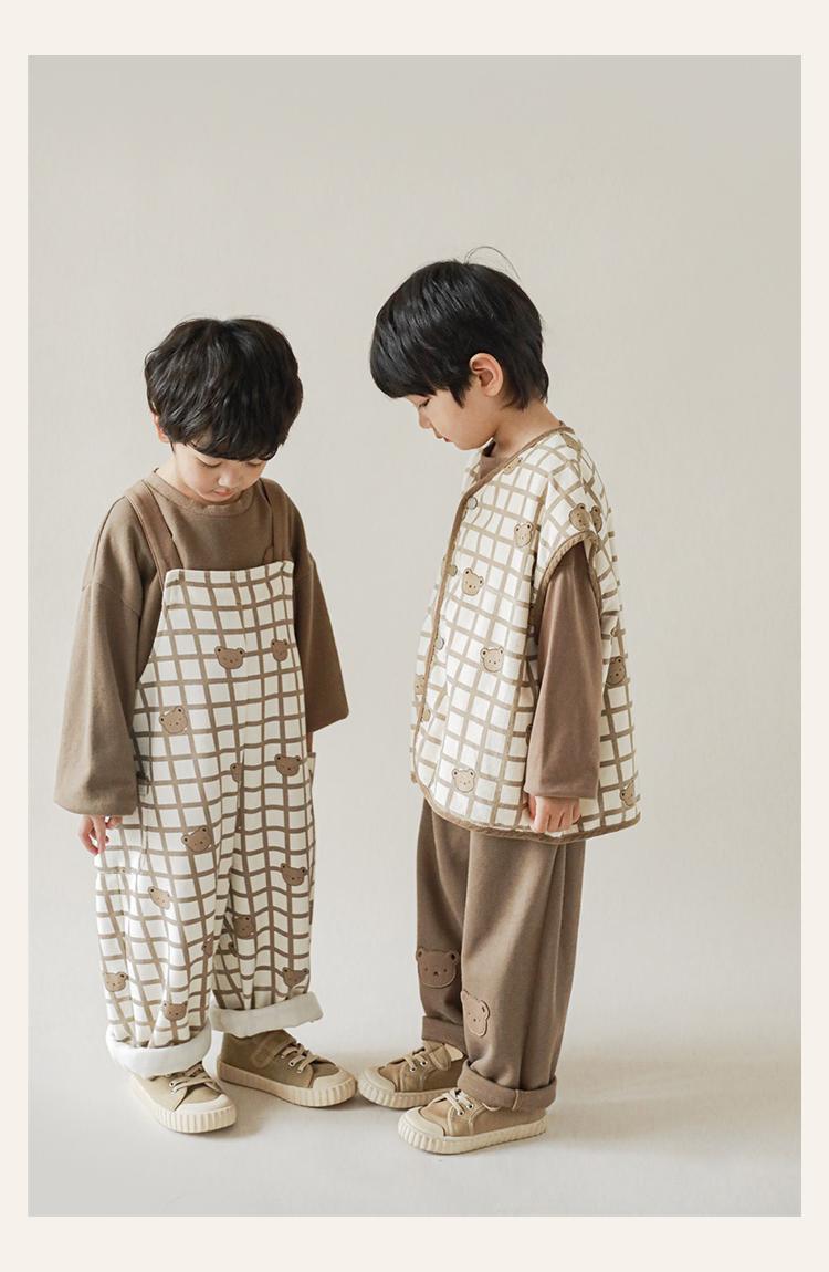 Wulibu Peto de Oso con Bloques de Color Ajedrez para Niños 2025 Nuevo Primavera y Otoño Pantalones Casuales de Dibujos Animados para Niños