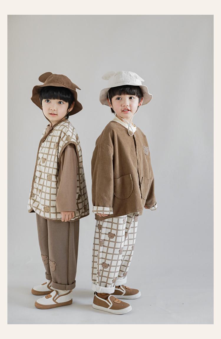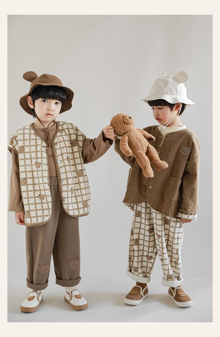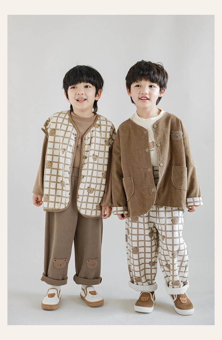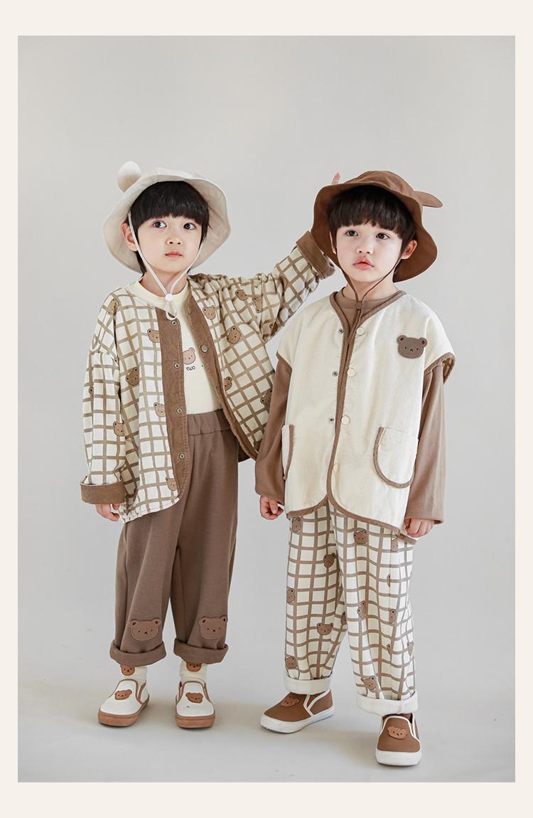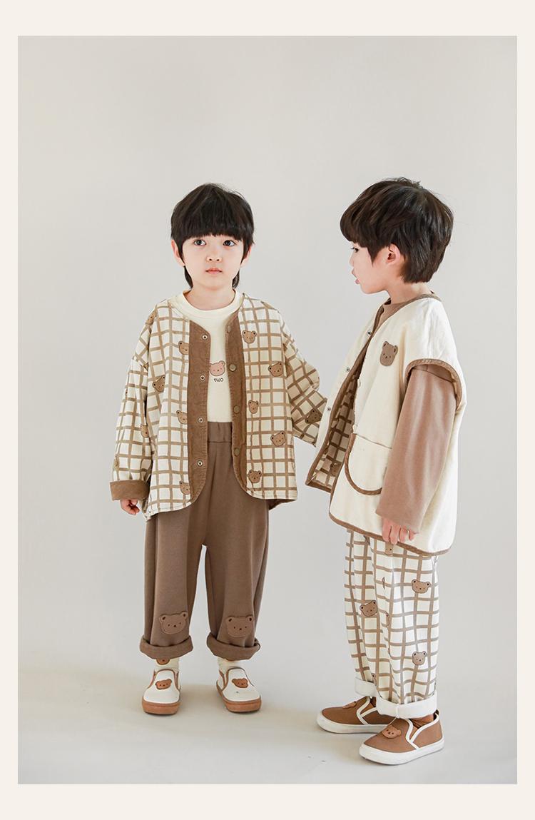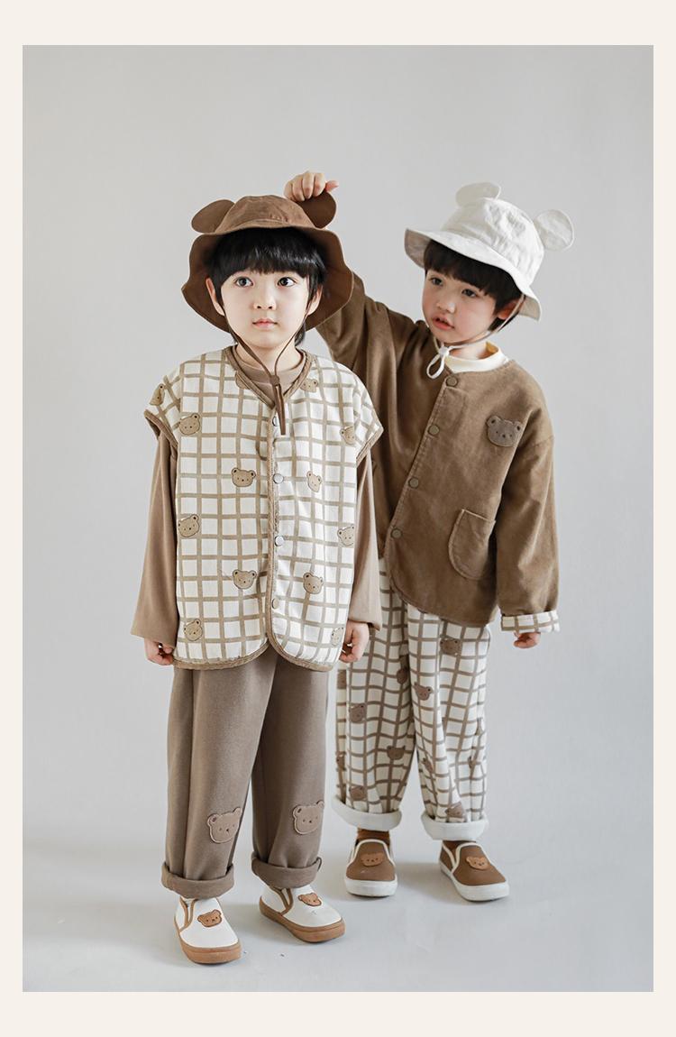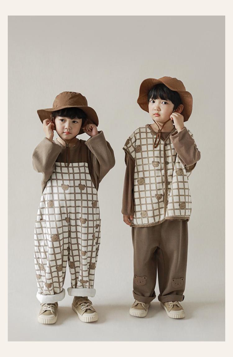 Wulibu Peto de Oso con Bloques de Color Ajedrez para Niños 2025 Nuevo Primavera y Otoño Pantalones Casuales de Dibujos Animados para Niños