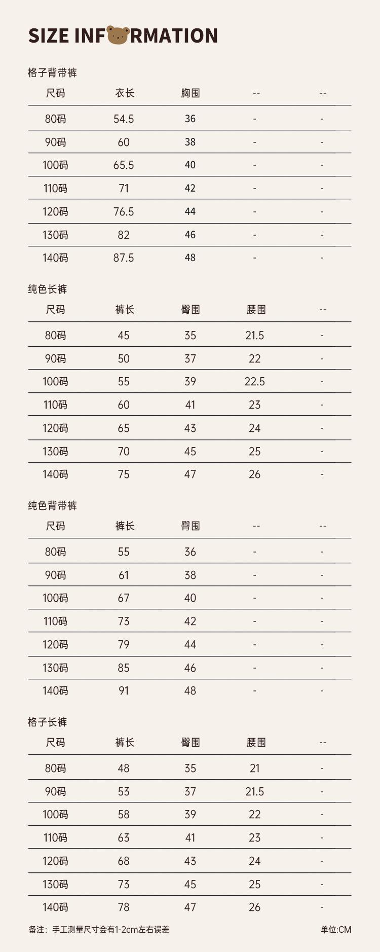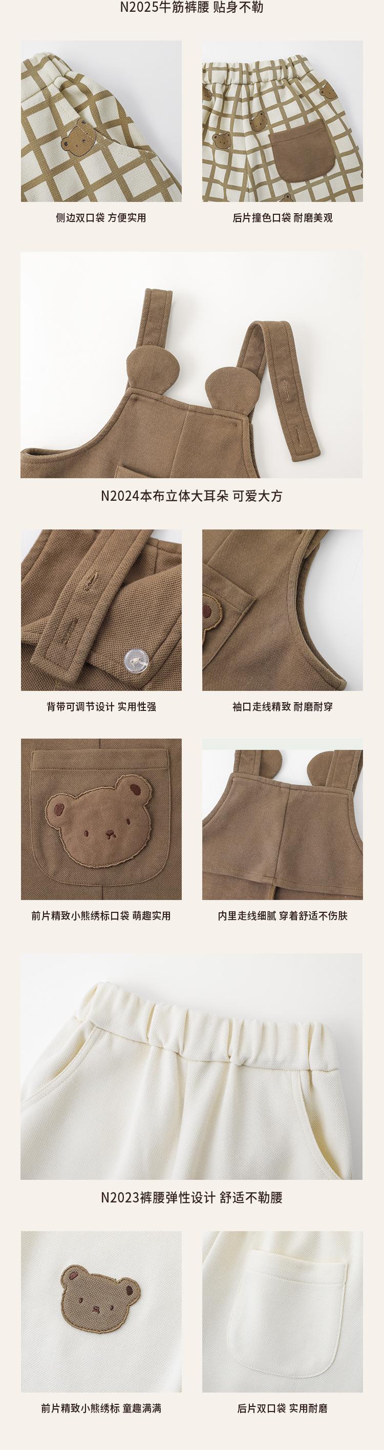 Plaid Bear Strappy Pants with Rice Bottom (N2021), Beige suspenders (N2024), Brown suspenders (N2024), Beige T...