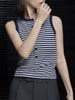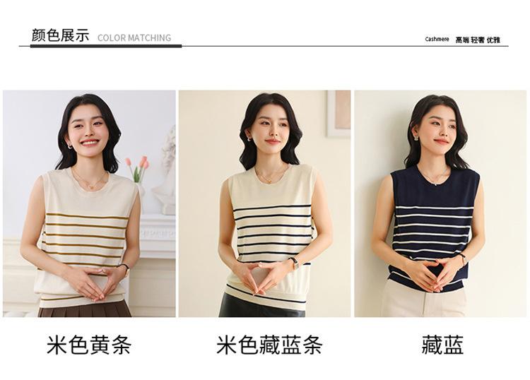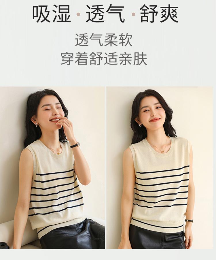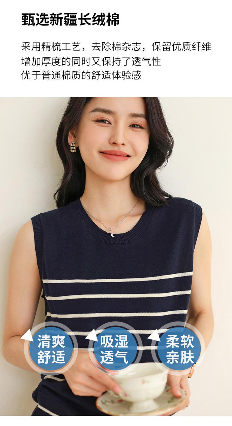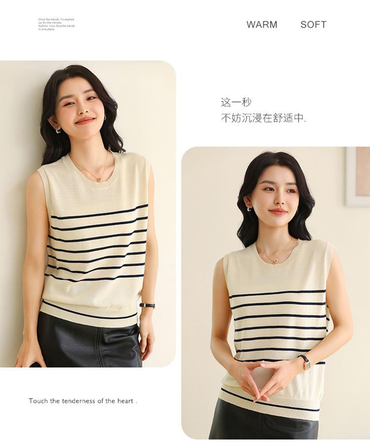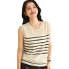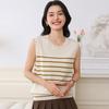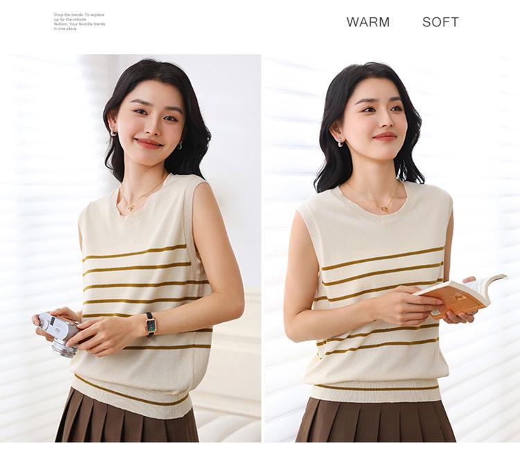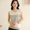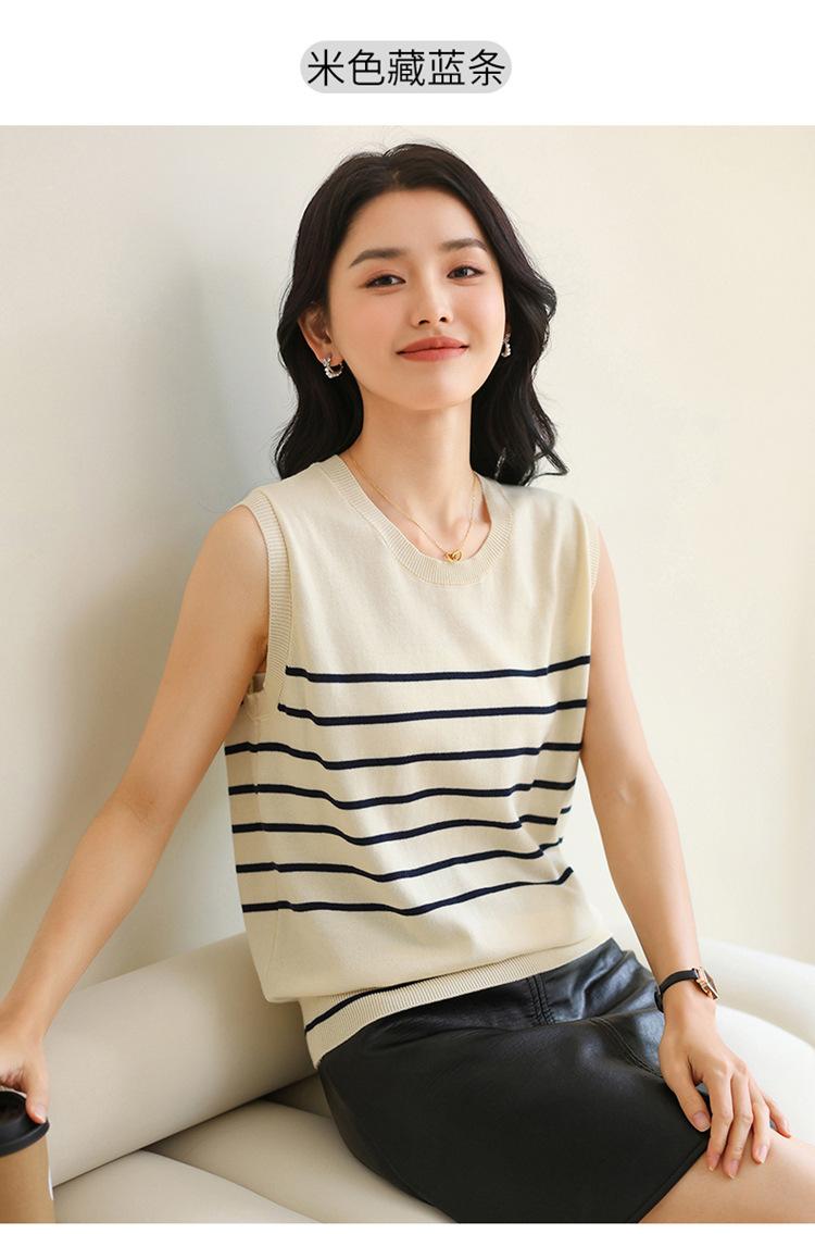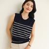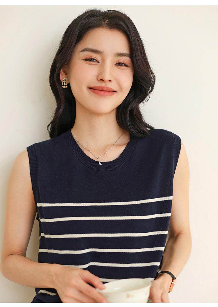 Suéter de algodón fino a rayas con cuello redondo suelto de verano 2024, chaleco sin mangas para damas de una generación de cabello