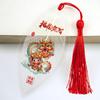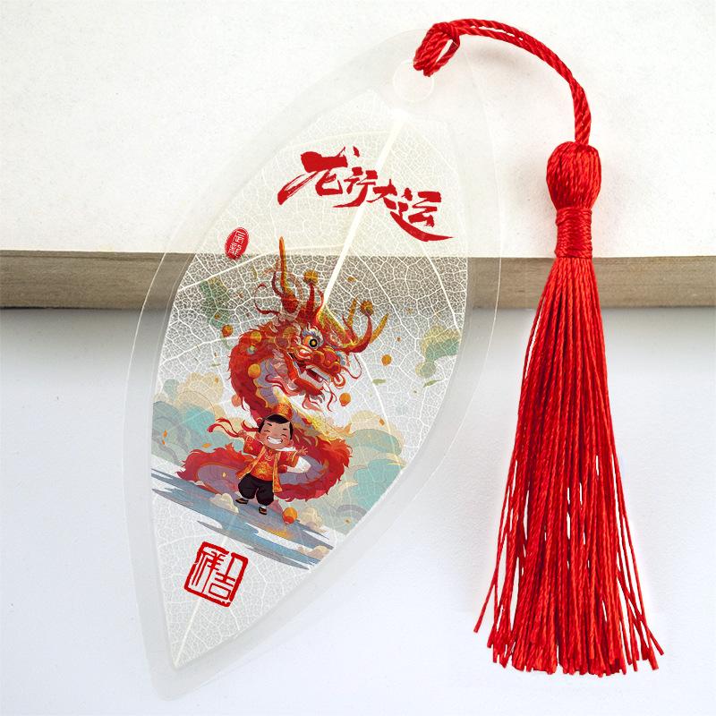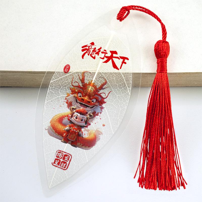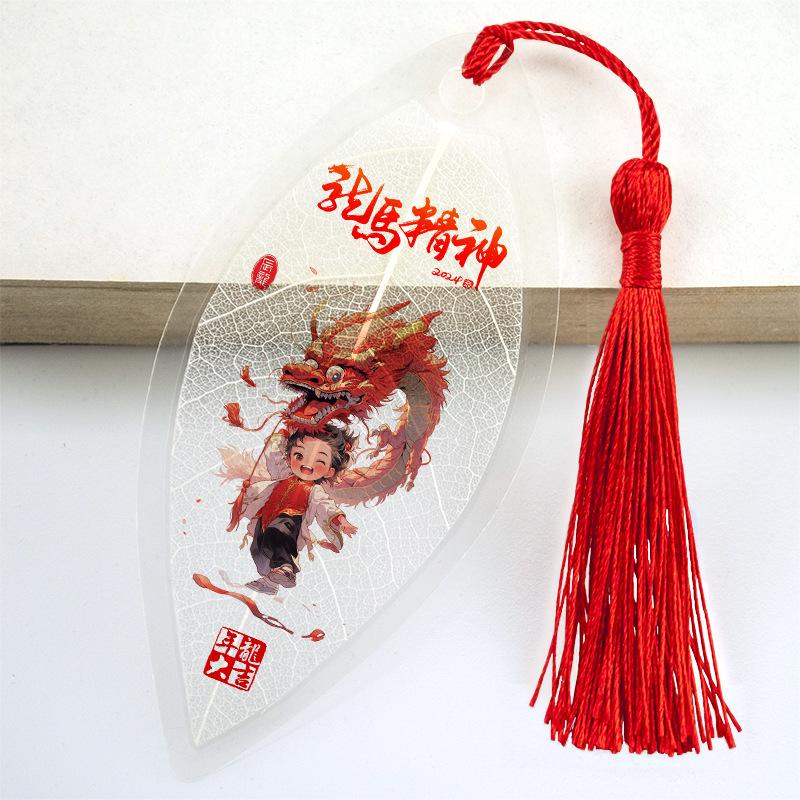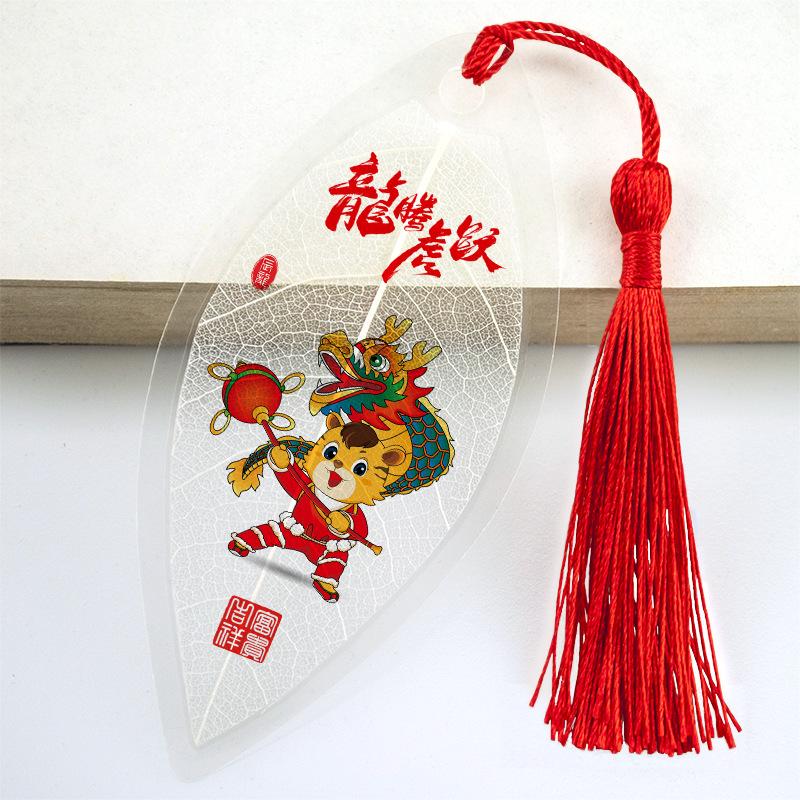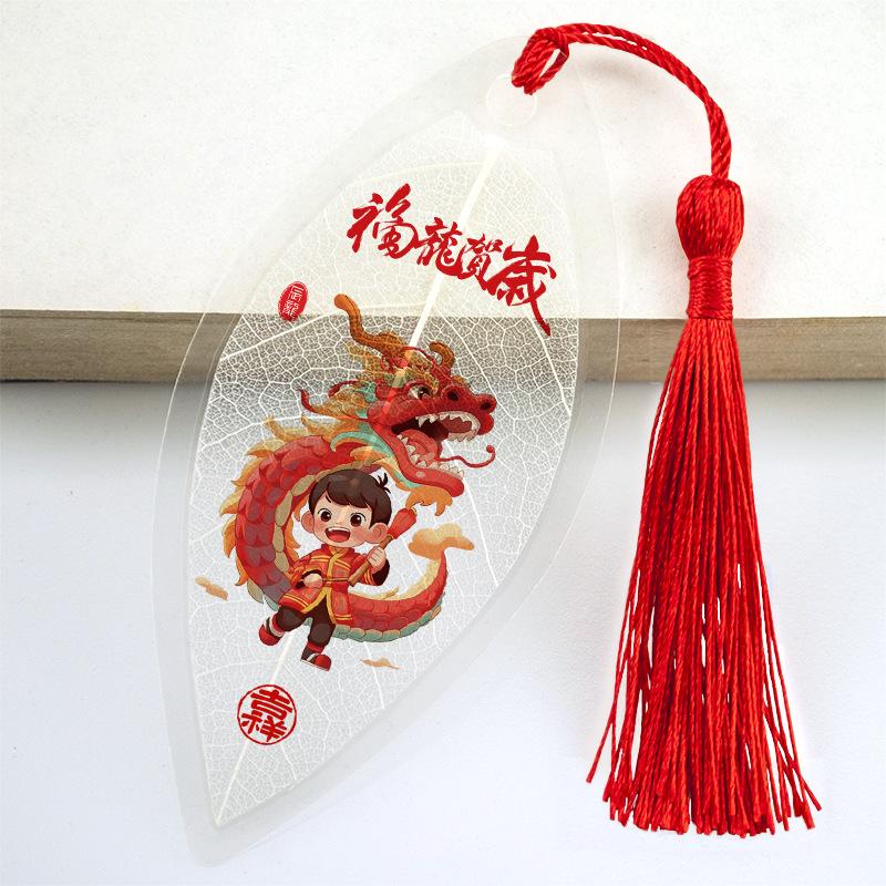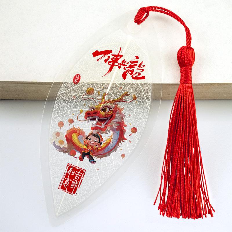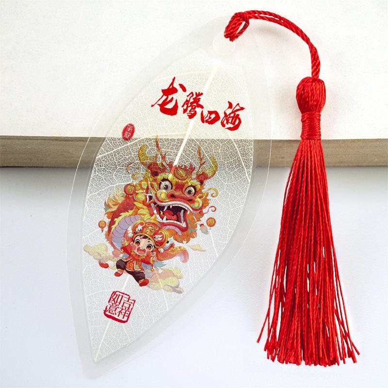 Marcador de vena de hoja, estilo chino, tradicional, año del dragón, regalo de la suerte para estudiantes, marcador creativo de papel recortado con borla