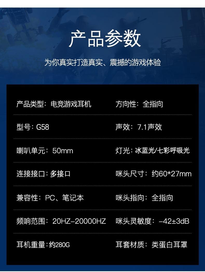 Auriculares para computadora G58 al por mayor, 7.1 canales, con cable y micrófono.