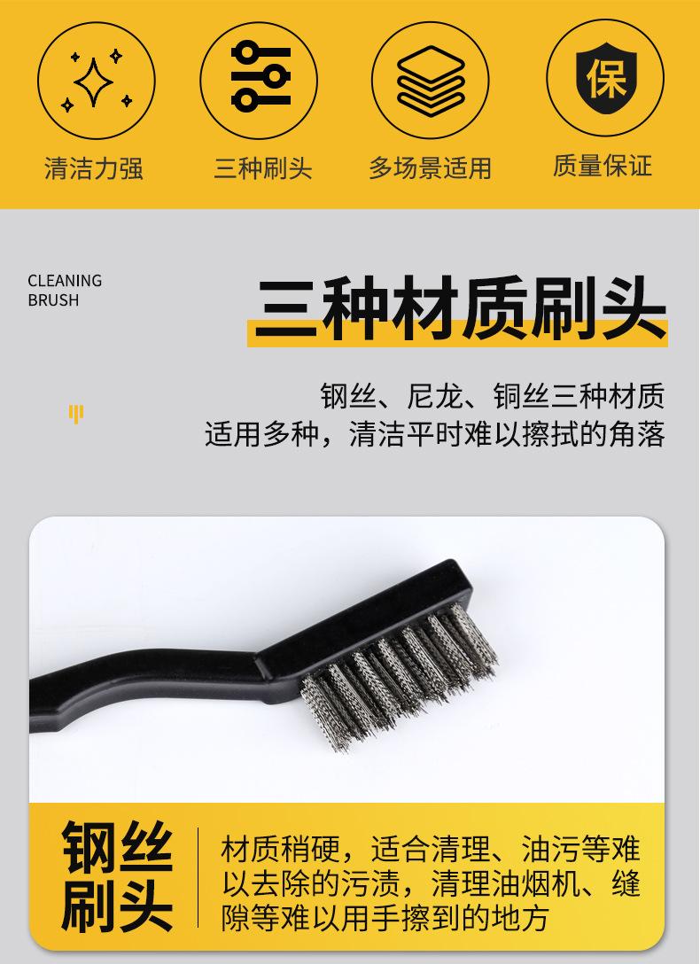 Stainless steel wire toothbrush, Nylon filament toothbrush, Three-piece set (with suction card packaging), Cop...