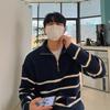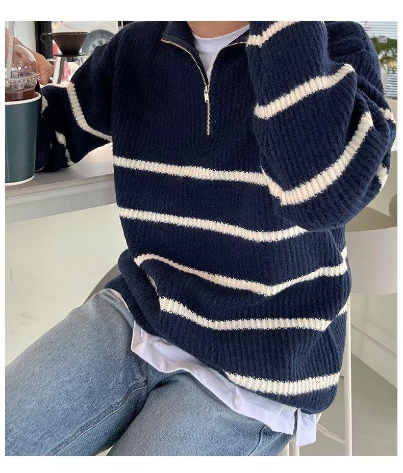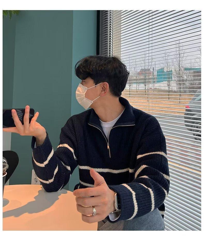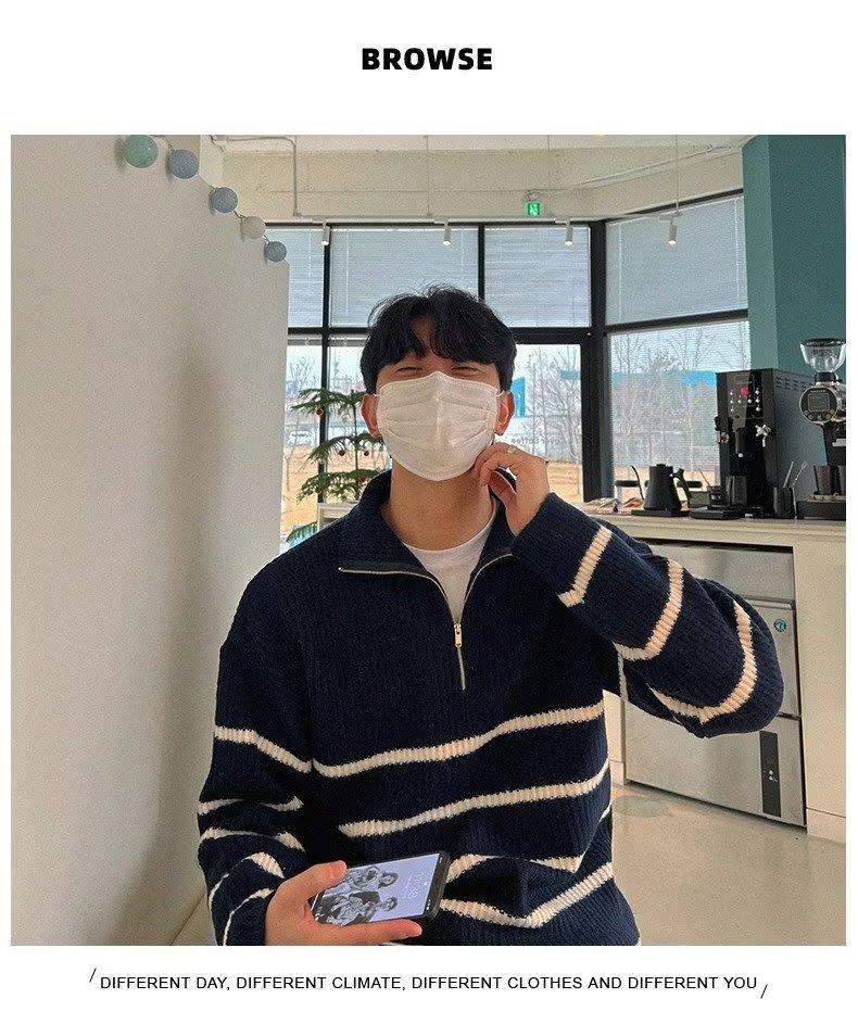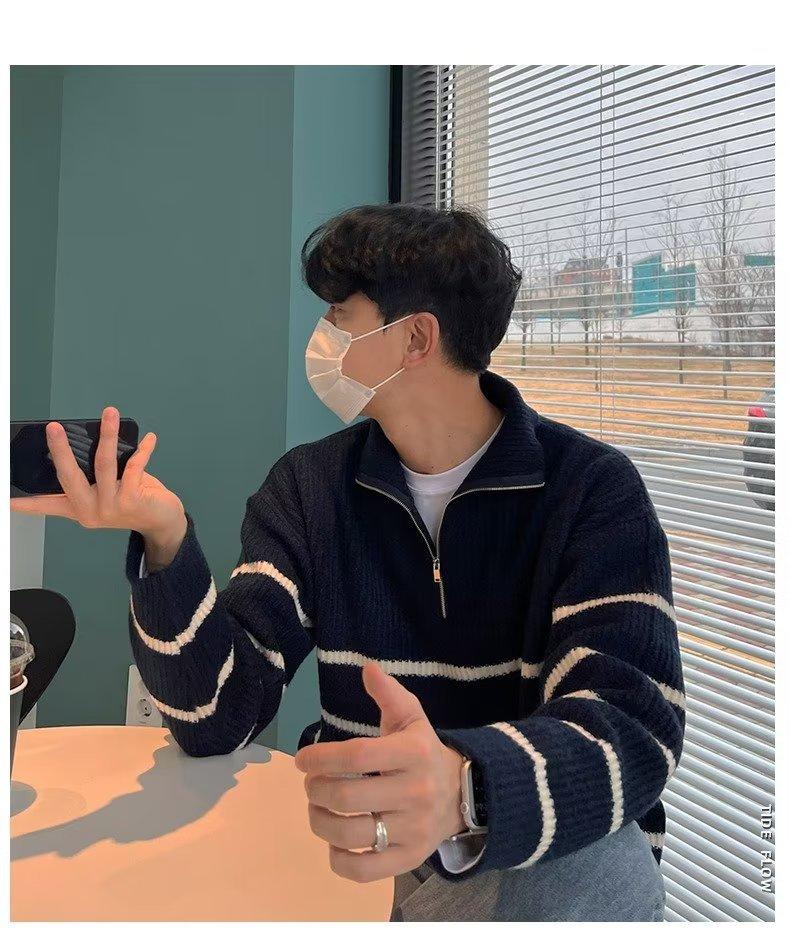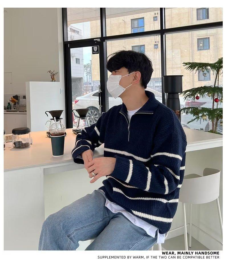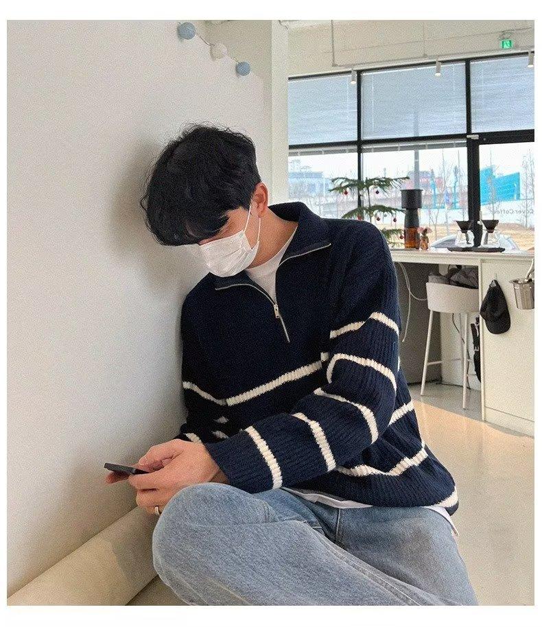 Suéter de punto falso de dos piezas para hombre, estilo coreano, ajustado, con cuello de camisa a rayas, manga larga, ropa exterior LED, top de otoño, moda