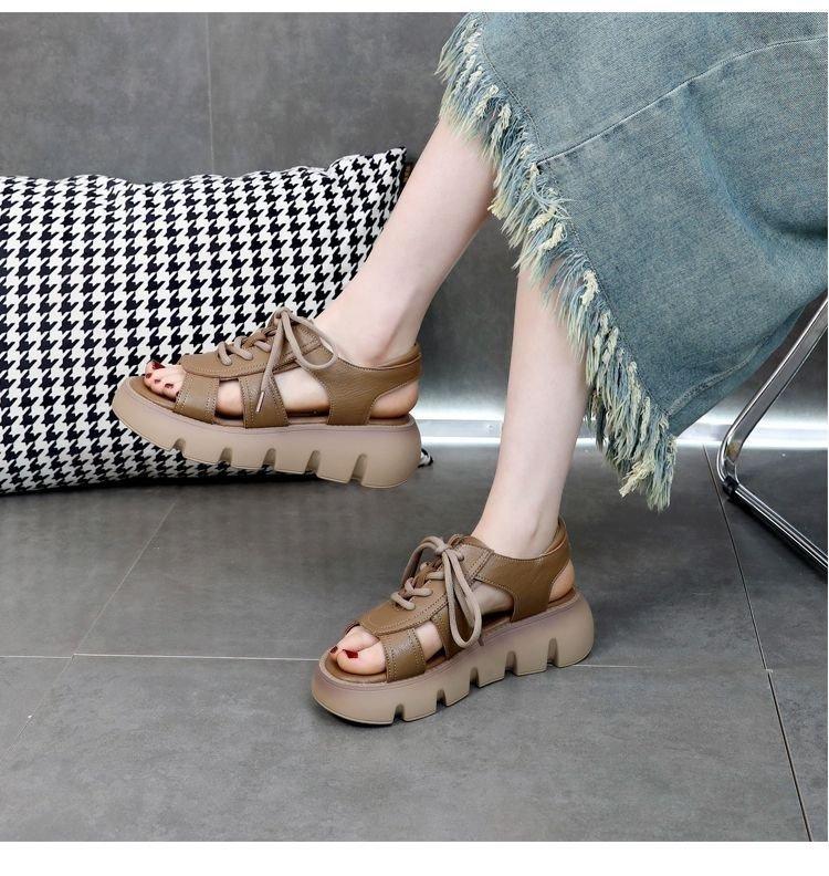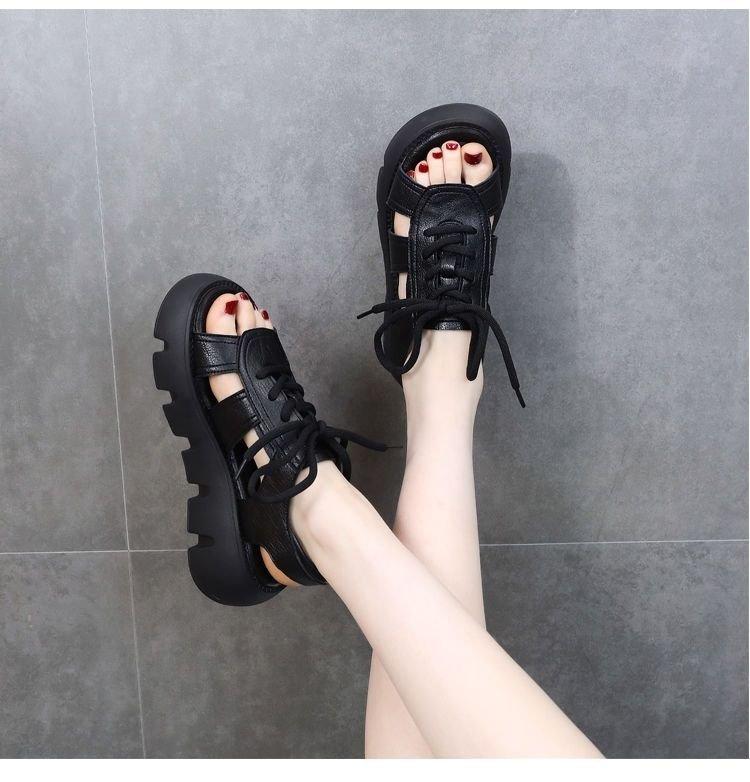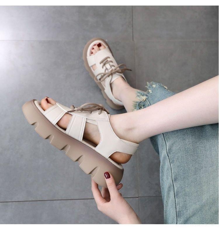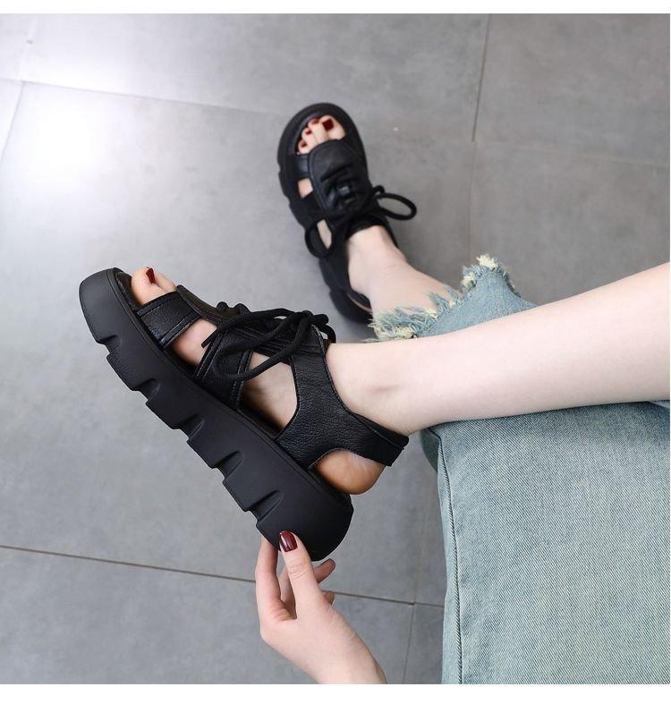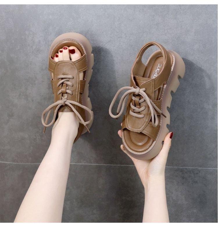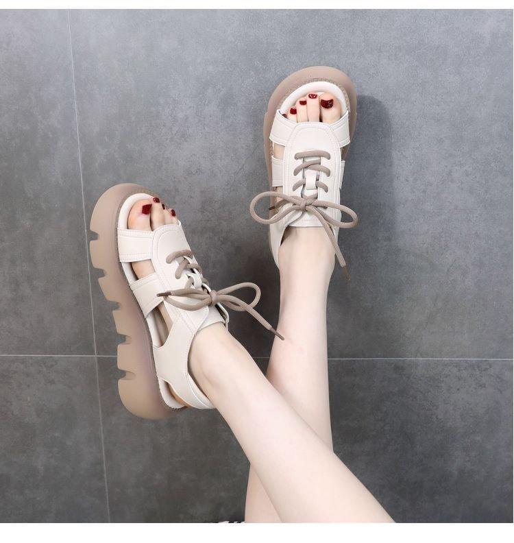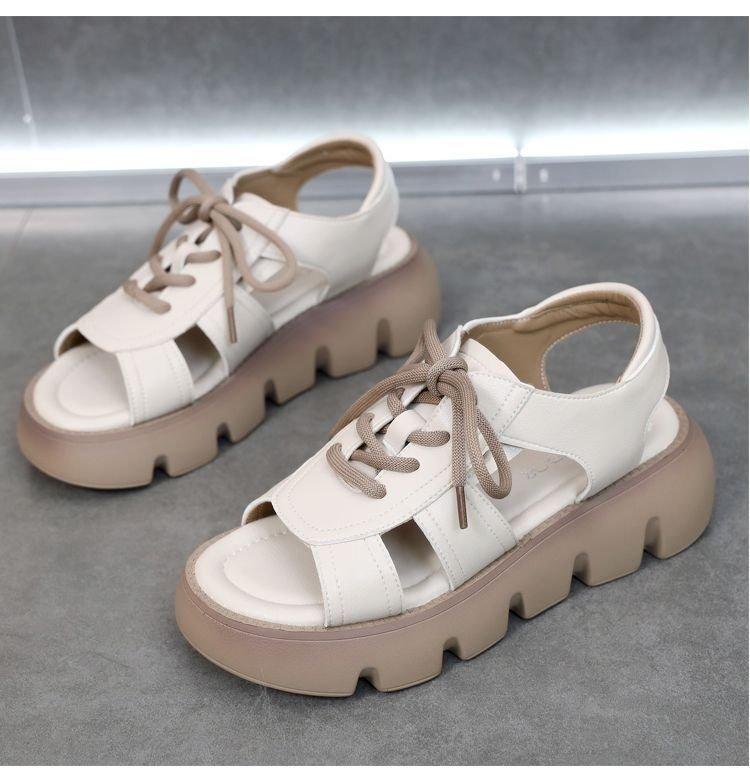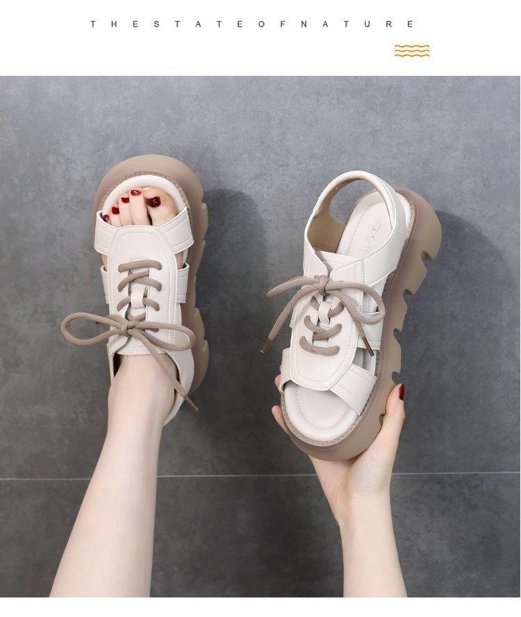 Sandalias de Plataforma para Mujer Verano Combinación Total 2024 Nueva Moda Huecas con Cordones Punta Abierta Casual Playa Deportivas