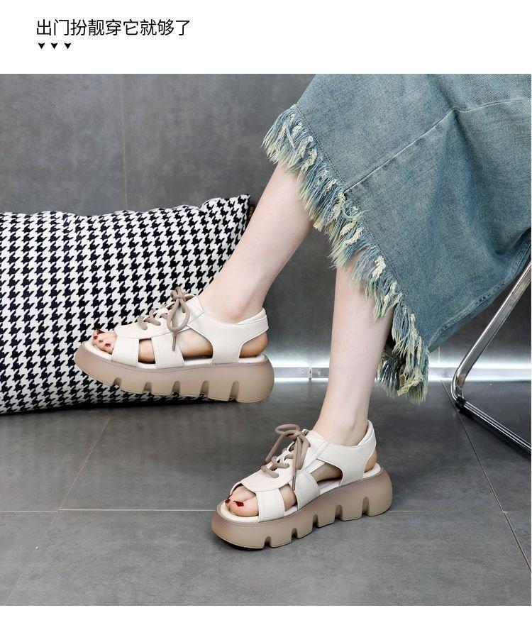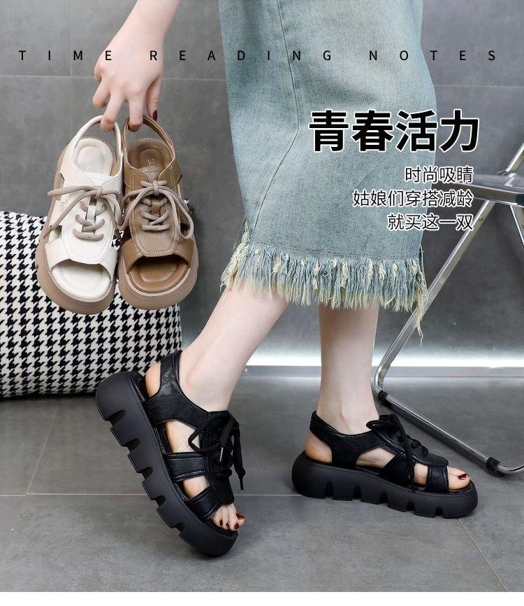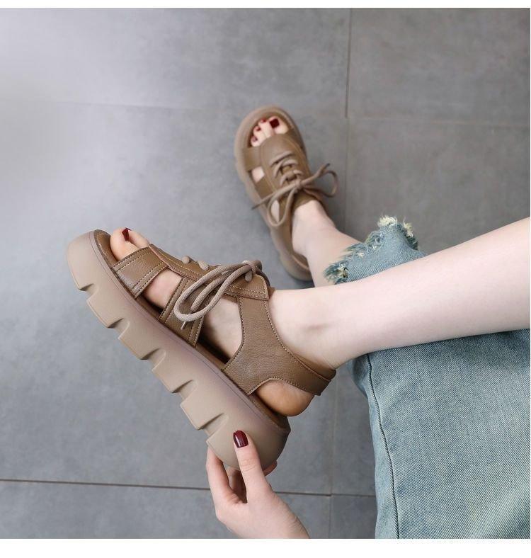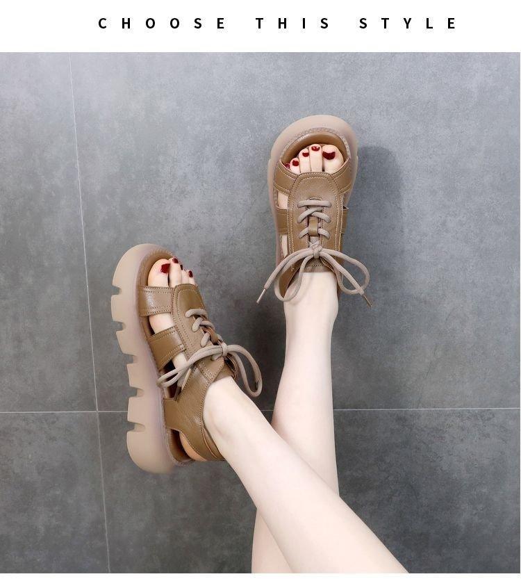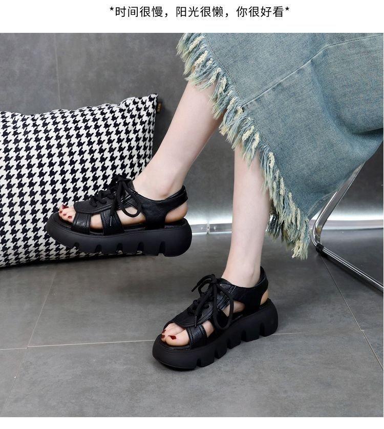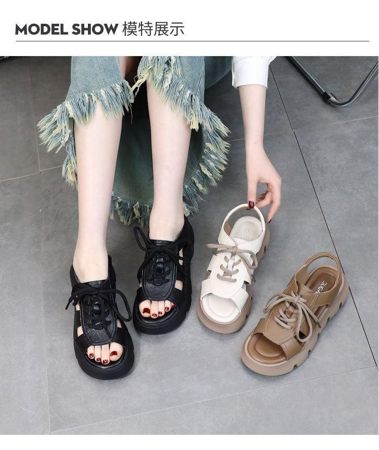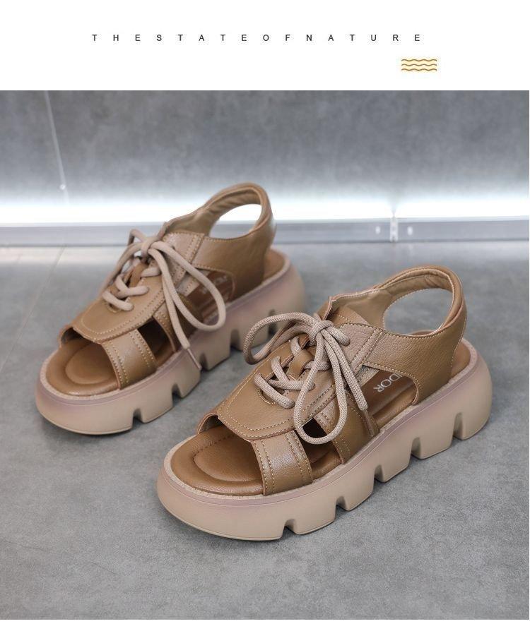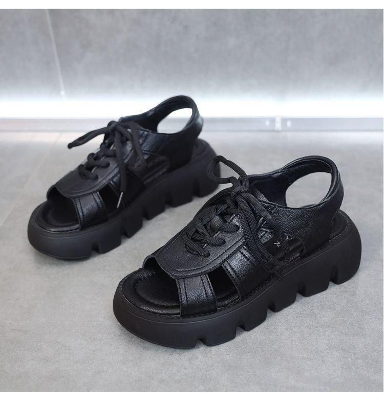 Sandalias de Plataforma para Mujer Verano Combinación Total 2024 Nueva Moda Huecas con Cordones Punta Abierta Casual Playa Deportivas