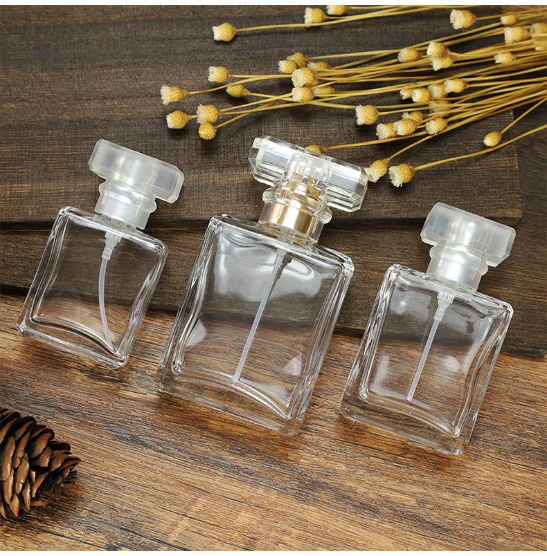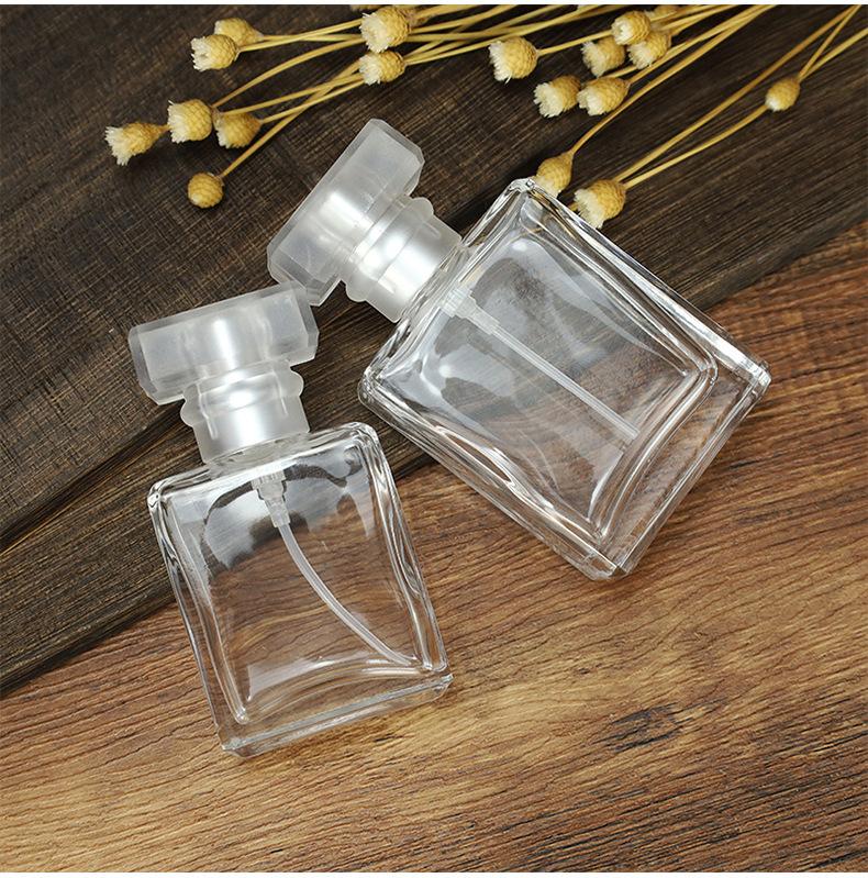 Compra Suministro de fábrica botella de vidrio blanco alto sub-botella vidrio transparente botella cuadrada con atomizador presionar sub-Botella botella de perfume al por mayor en Joom.pro