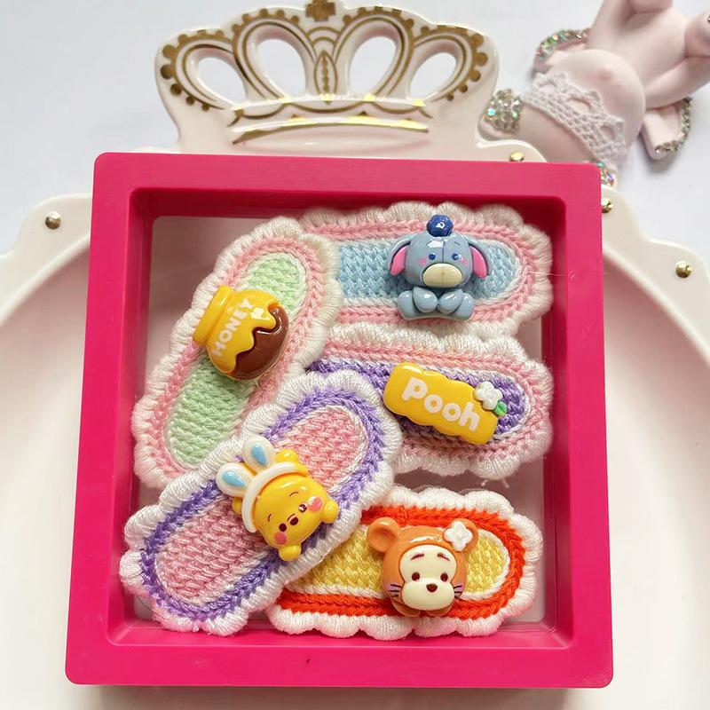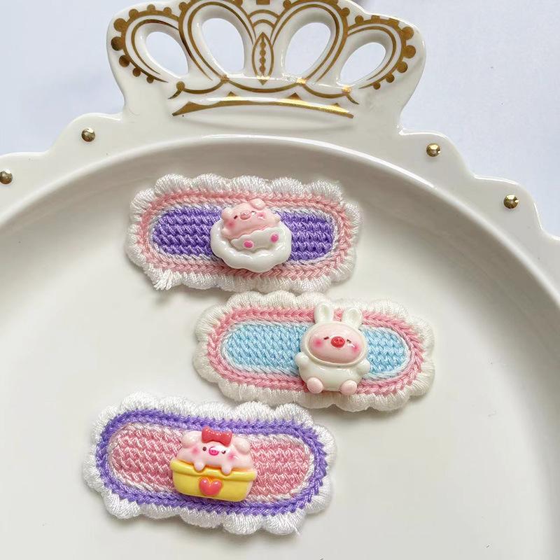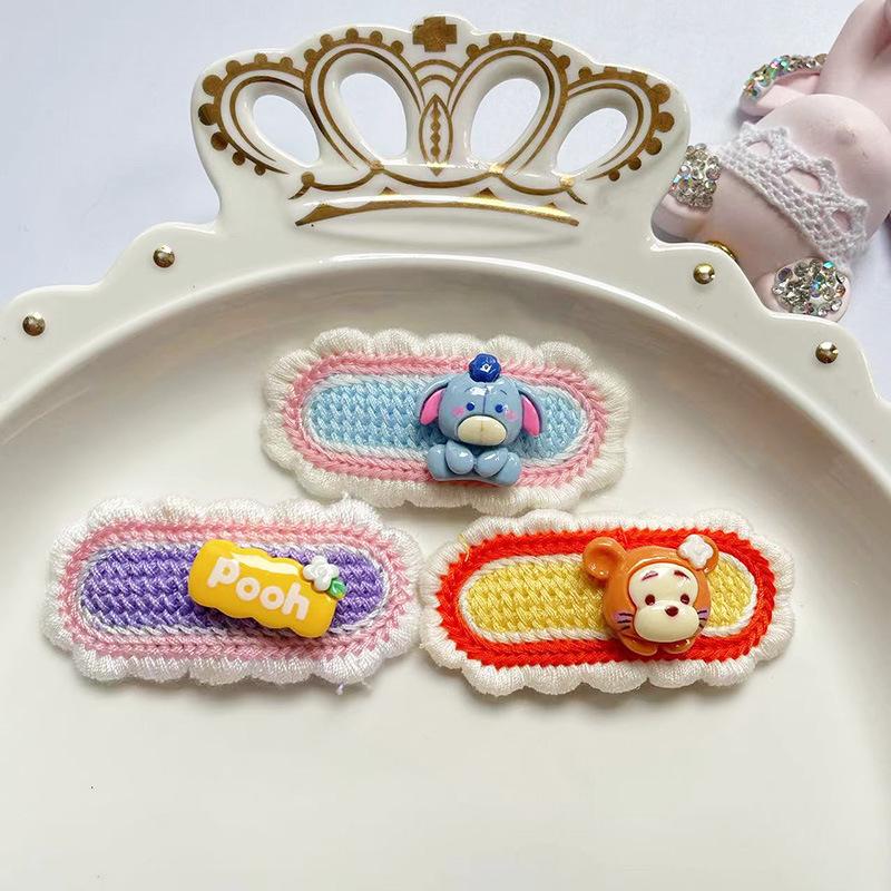 Nuevo juego de horquillas de encaje tejidas a mano para niña, horquilla rota con dibujos animados en la parte trasera, clip BB, tocado de punto para niña
