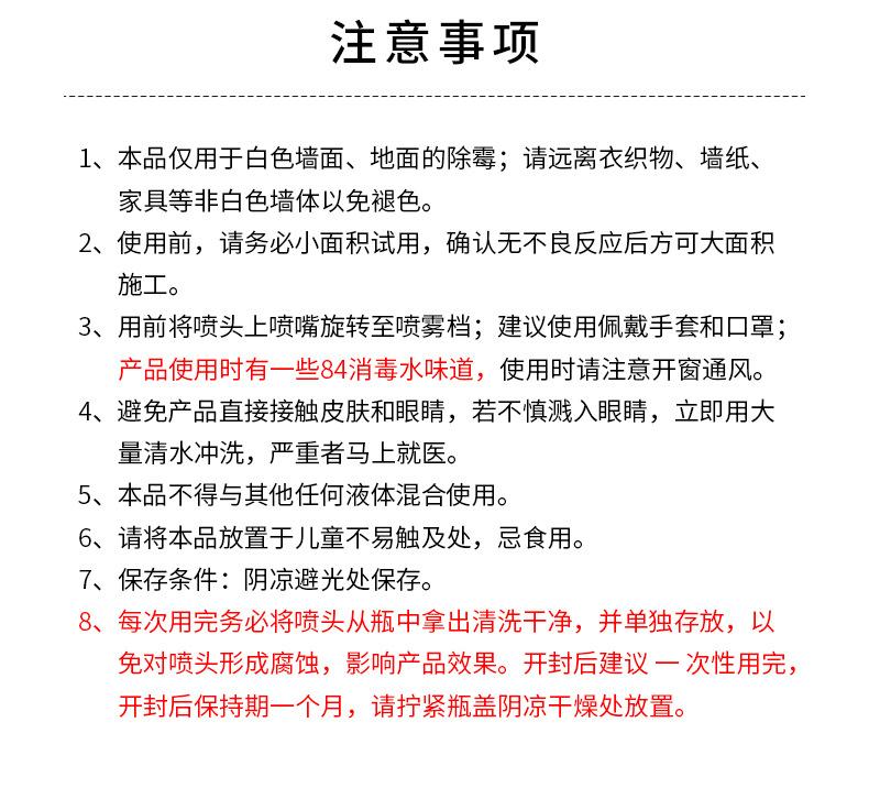 500ml Chinese version of wall mold remover with nozzle, 500ml English version of wall mold removal agent inclu...