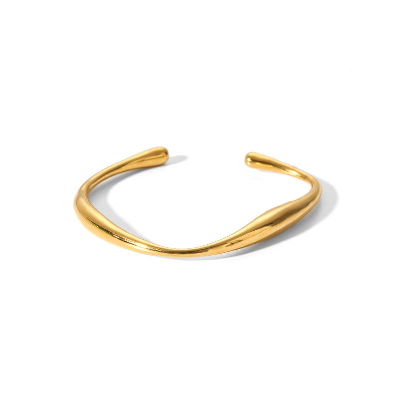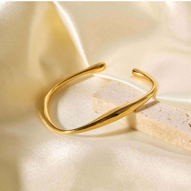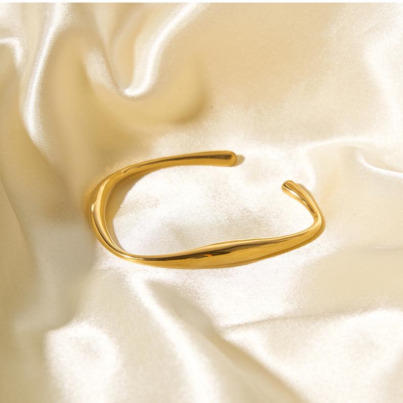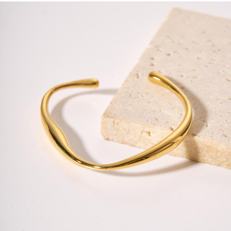 Pulsera Abierta Dorada de Moda Europea y Americana Diseño Nicho Francés Acero Inoxidable Pulsera Irregular Joyería de Alta Gama para Mujer