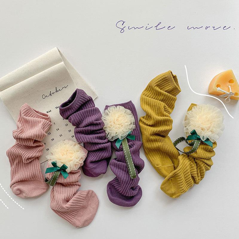 Calcetines para niños estilo japonés medias largas color sólido doble aguja calcetines para niñas color sólido calcetines hasta la pantorrilla lazo calcetines de rizo calcetines de algodón para mujer