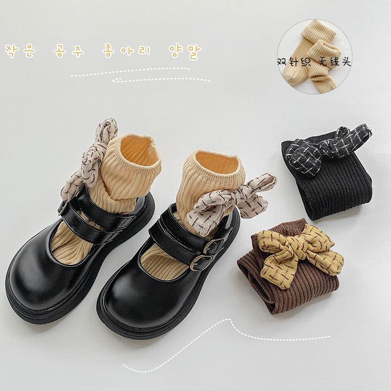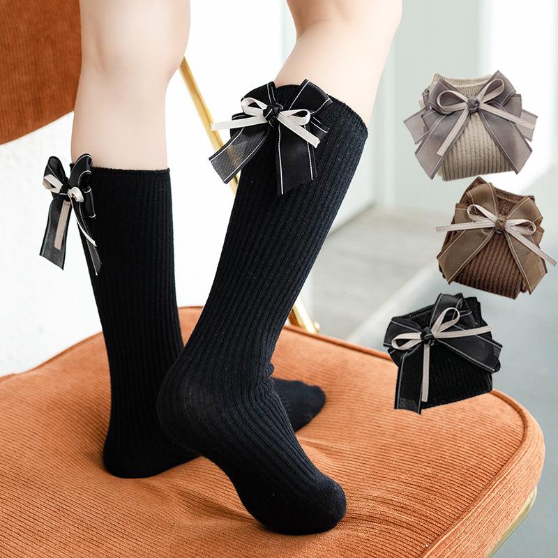 Calcetines nuevos de otoño e invierno estilo princesa para niños, calcetines coreanos de doble aguja para niños, calcetines lindos con lazo para niños hasta la pantorrilla