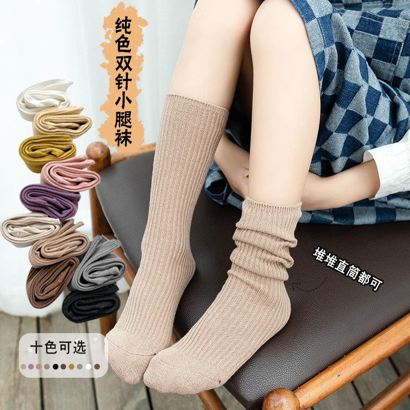 L2030 otoño e invierno nuevo estilo calcetines de felpa versión coreana calcetines para niños color sólido doble aguja calcetines largos calcetines de algodón punto pantorrilla calcetines para niños