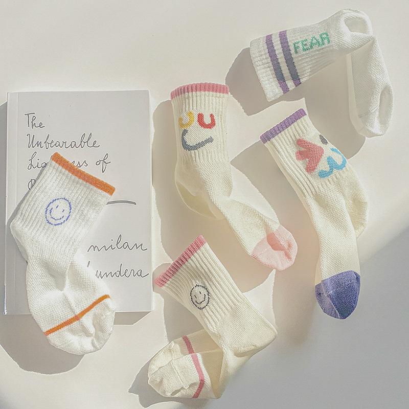 Calcetines de media caña sencillos para niños nuevos de otoño e invierno, calcetines para niñas con letras versión coreana, calcetines de algodón con carita sonriente, calcetines para niños al por mayor