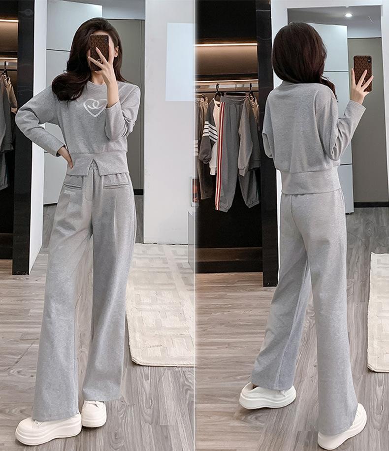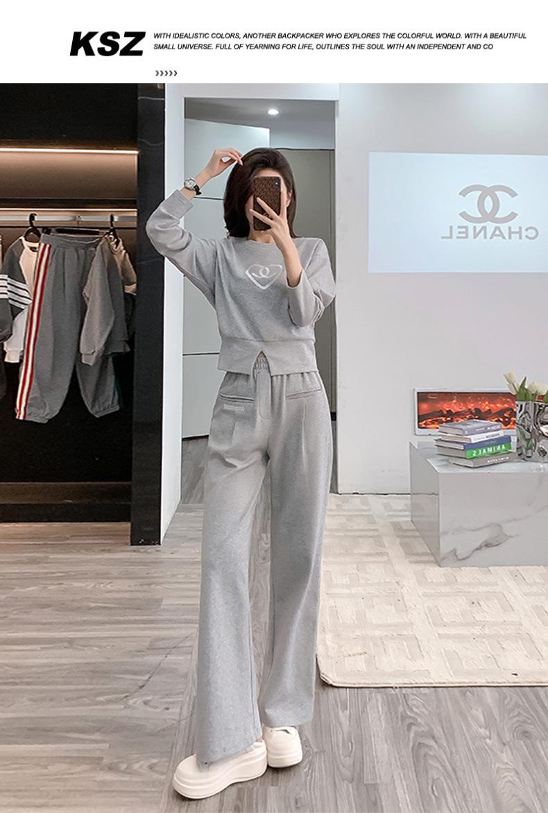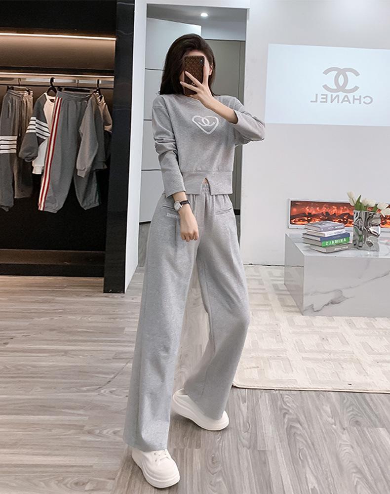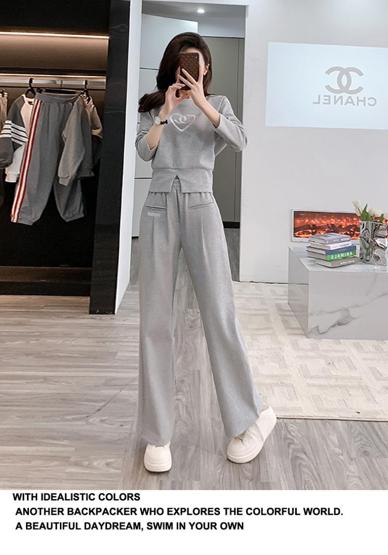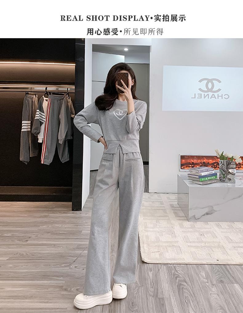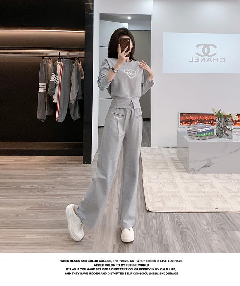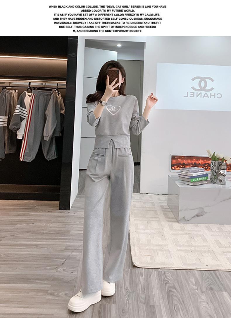 Otoño 2025 Nuevo Traje Versátil de Alta Gama Popular en Internet para Mujer Simple de Manga Larga con Pantalón Diseño de Bordado de Amor